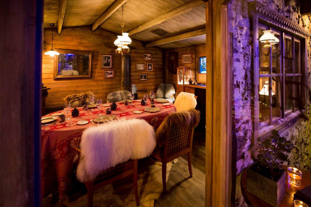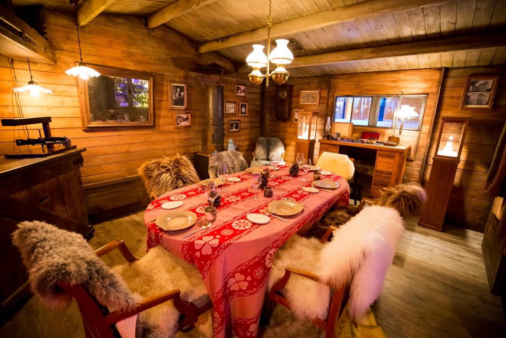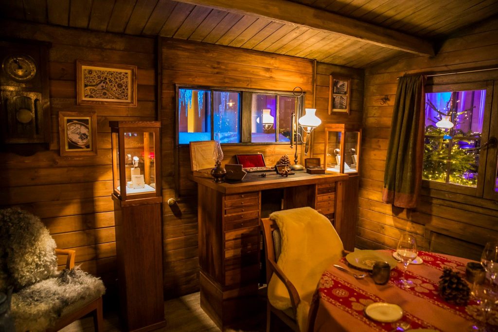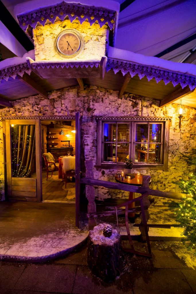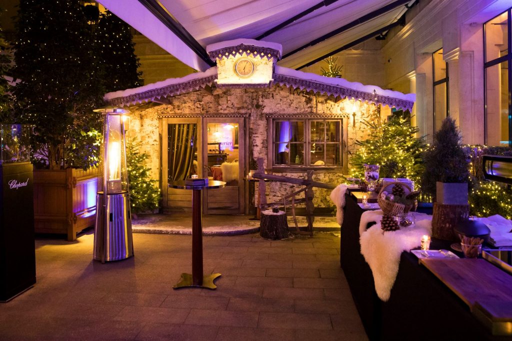Flocons, boiseries, sapins et ambiance tamisée subliment cette réplique parfaite du Chalet Fleurier, en référence au village situé dans le Jura Suisse, l’un des berceaux de la Haute horlogerie, où la manufacture Chopard est installée.