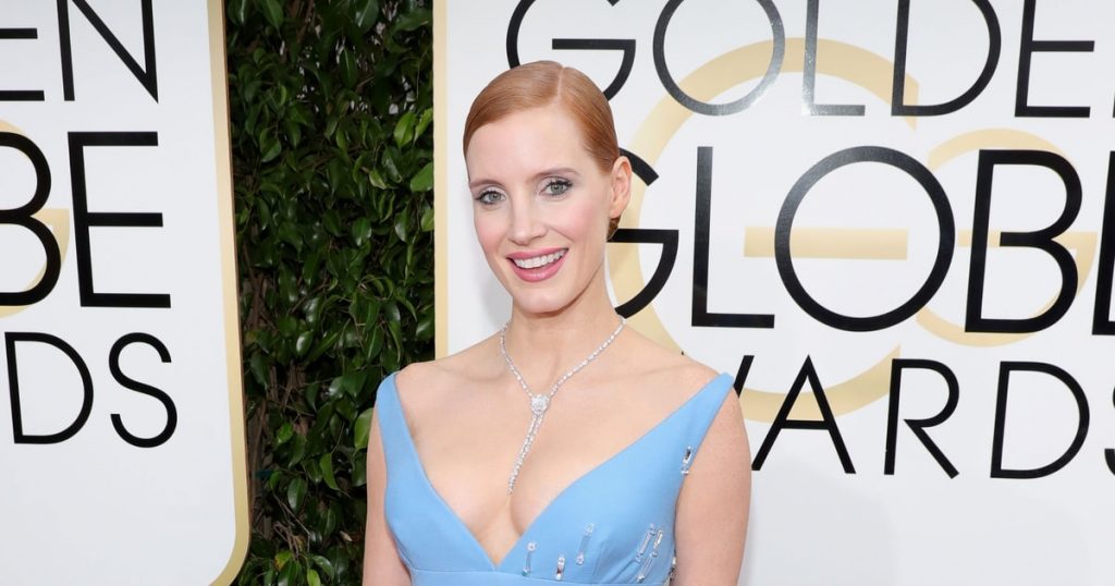 BEVERLY HILLS, CA – JANUARY 08: Actress Jessica Chastain attends the 74th Annual Golden Globe Awards at The Beverly Hilton Hotel on January 8, 2017 in Beverly Hills, California. (Photo by Steve Granitz/WireImage)Jessica Chastain, nommée pour son rôle dans Miss Sloane, portait un collier haute joaillerie Piaget Rose en or blanc 18 carats sertis de 265 diamants taille brillant pour sublimer sa robe Prada.