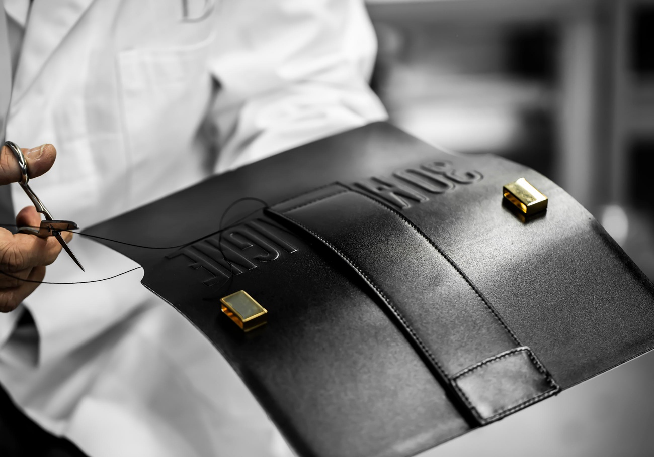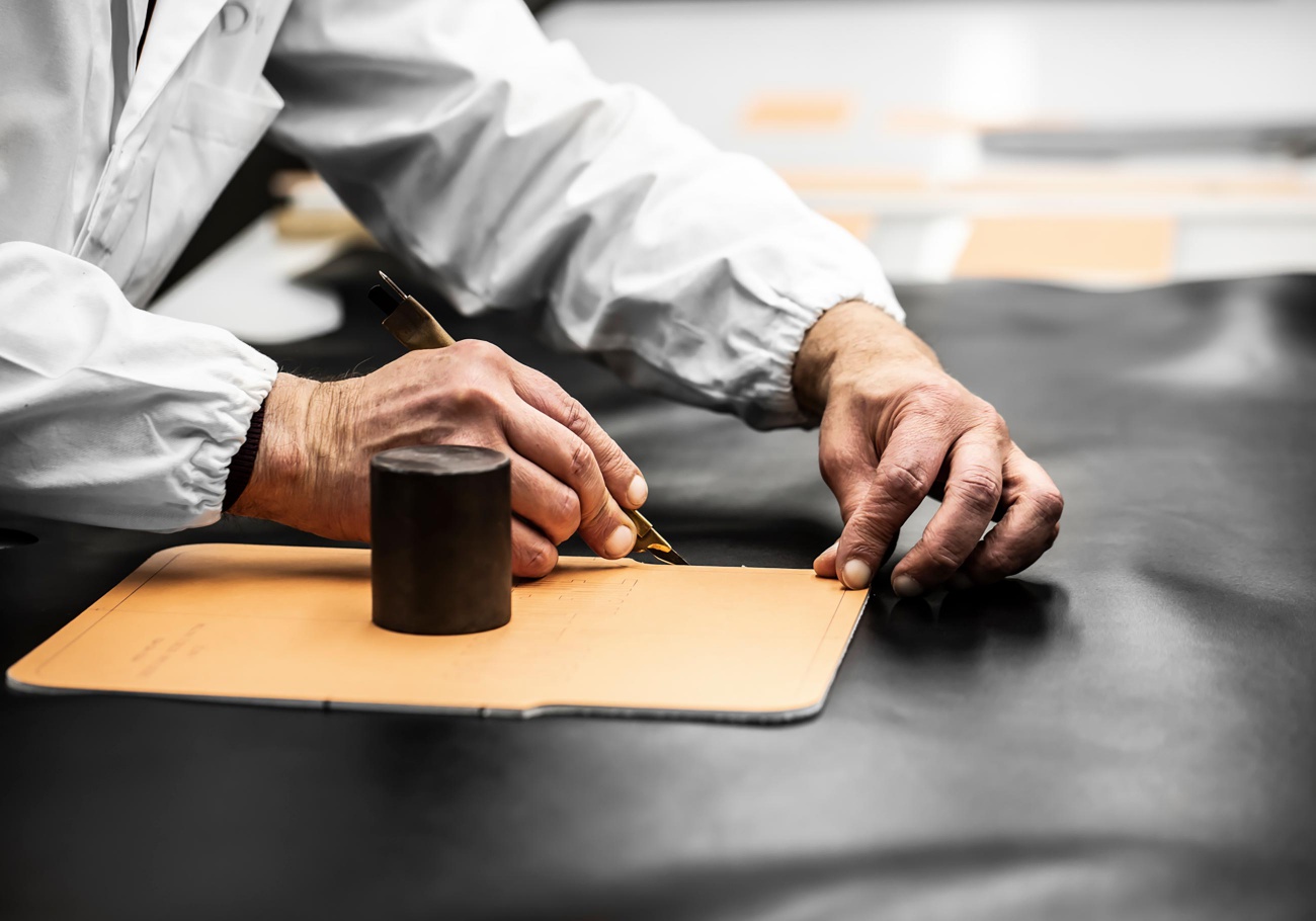 Tout en rondeur, chacune des lettres se dessine sur le cuir, grâce à la main habile de l’artisan qui les sculpte une à une.
