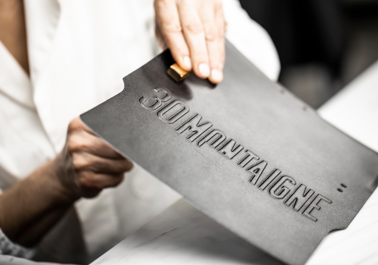 Ce rituel de création unique, qui allie la beauté et la virtuosité des techniques, se poursuit par l’inscription du nom 30 Montaigne.