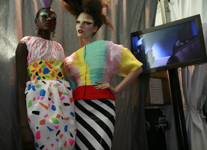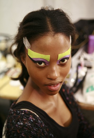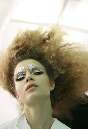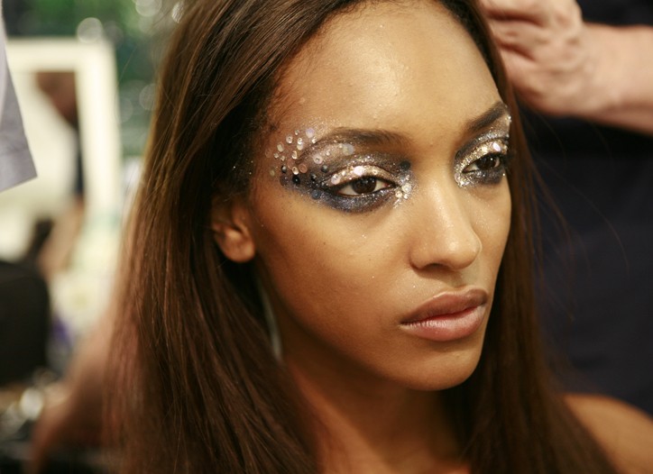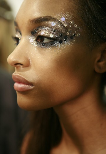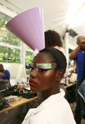 Notre chère envoyée spéciale a été complètement subjuguée par le travail effectué par l’équipe de maquilleurs et de coiffeurs du défilé afin de créer des silhouettes post-modernes un peu hors du temps. Le talent de la maquilleuse Pat McGrath a littéralement explosé grâce à un maquillage mettant l’accent sur les yeux les entourant de paillettes et ajoutant ici et là quelques bandes de couleur. Quant à Orlando Pita, ces coiffes volumineuses et « mousseuses » apportaient une touche Art Déco aux modèles : « Nous avons juste posé des extensions dans les cheveux et leur avons donné un rendu vraiment jeune et girly, et toujours en contraste avec les lignes sculpturales de l’Art Déco« .