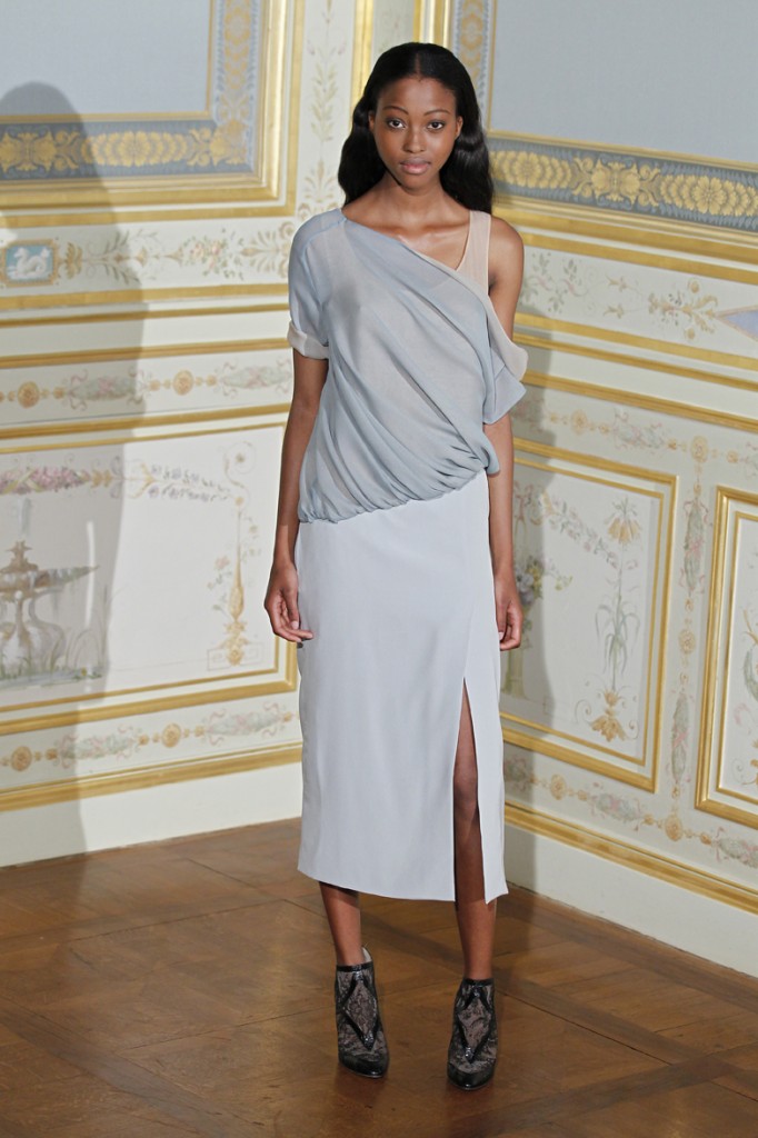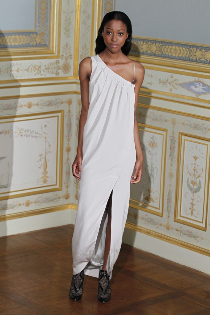 Pour l’anniversaire de sa marque Anne Valérie Hash, la créatrice nous offre une collection Automne Hiver 2011-2012 élégante, sobre et pleine de douceur confirmant la modernité et l’intemporalité de son style. Reprenant les thèmes chers à sa couture, elle arrive parfaitement à nous montrer une autre voie, loin du clinquant habituel de la Haute-Couture, mais arrivant parfaitement à restituer l’expression d’une féminité élégante, sensuelle et surtout bien dans son époque.
