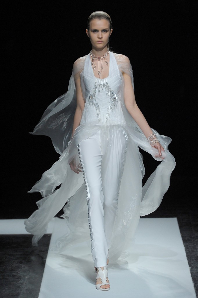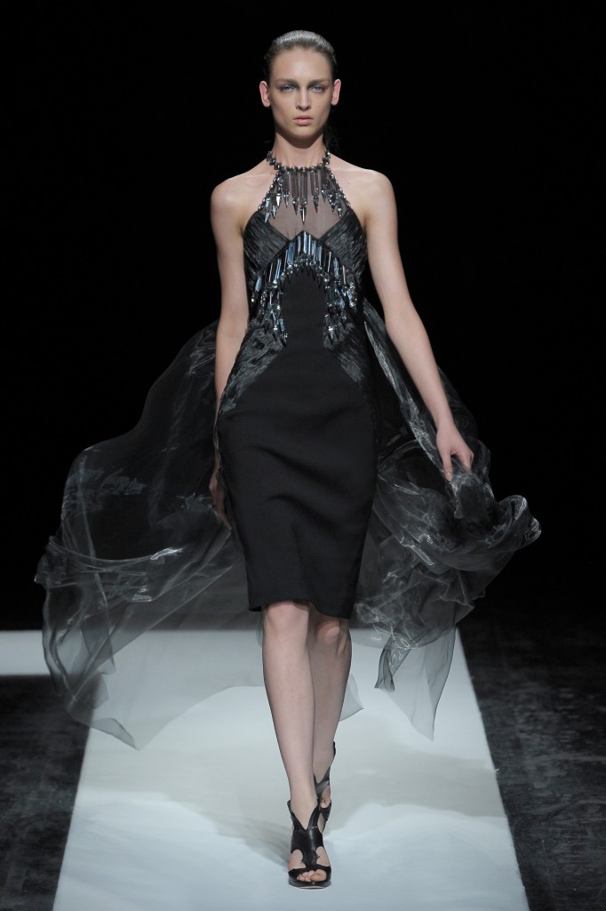 Comme à l’accoutumée, sa passion pour le cinéma nourrit son défilé, dont les différents passages se suivent telles les lignes d’un synopsis. Utilisant le mythe de Dracula comme une manière de relire l’histoire de l’art entre les années 20 et les années 30, il essaie à travers cette collection d’illustrer le passage du romantisme à l’expressionnisme né en Allemagne au lendemain de la Première Guerre mondiale.