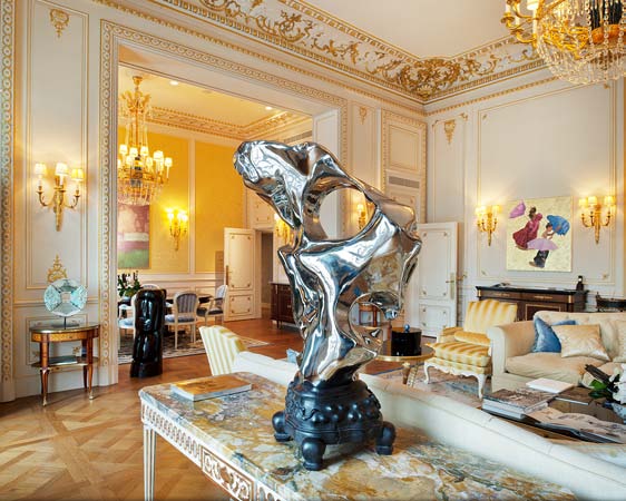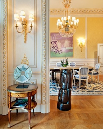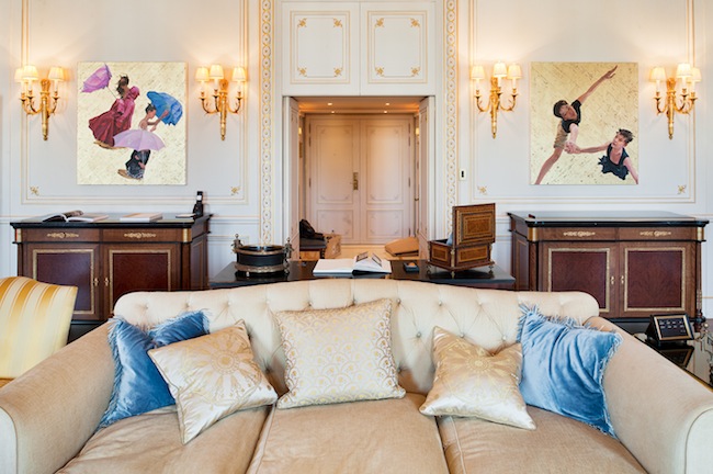 Les invités ont pu ainsi découvrir la Suite Impériale, ancien appartement privé du Prince Roland Bonaparte inscrit aux Monuments Historiques depuis 2009, dans un contexte artistique plus contemporain, et assister à une confrontation des époques et des styles des plus enthousiasmantes. Du salon à la chambre à coucher en passant par la salle de bains et le dressing, Laurence Dreyfus a pris littéralement possession des lieux pour y installer ses œuvres avec harmonie.