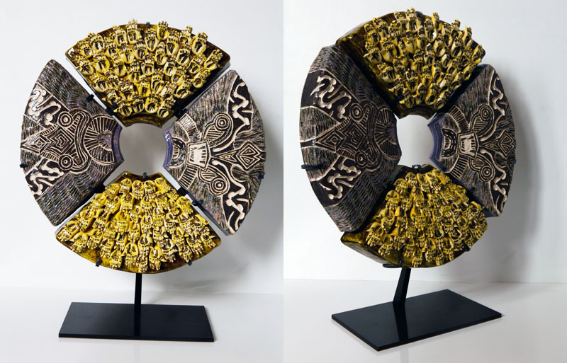 Le troisième, le Vide, est un dépouillement intérieur sur le principe des vanités occidentales modernes. La céramique représente des grottes en faïence émaillée jaune mordoré représentant la divinité couplée a une terre chamotée blanche à l’émaillé aubergine où se trouvent les démons.
