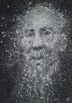 La toile Artist of the People n°3 de Zhang Huan à base de cendres d’encens brûlés récoltées dans les temples est troublante. Selon l’angle de vue, le personnage est plus ou moins perceptible et semble suivre le spectateur du regard. Il est intéressant de voir comment à partir de déchets, l’artiste arrive à construire une œuvre.