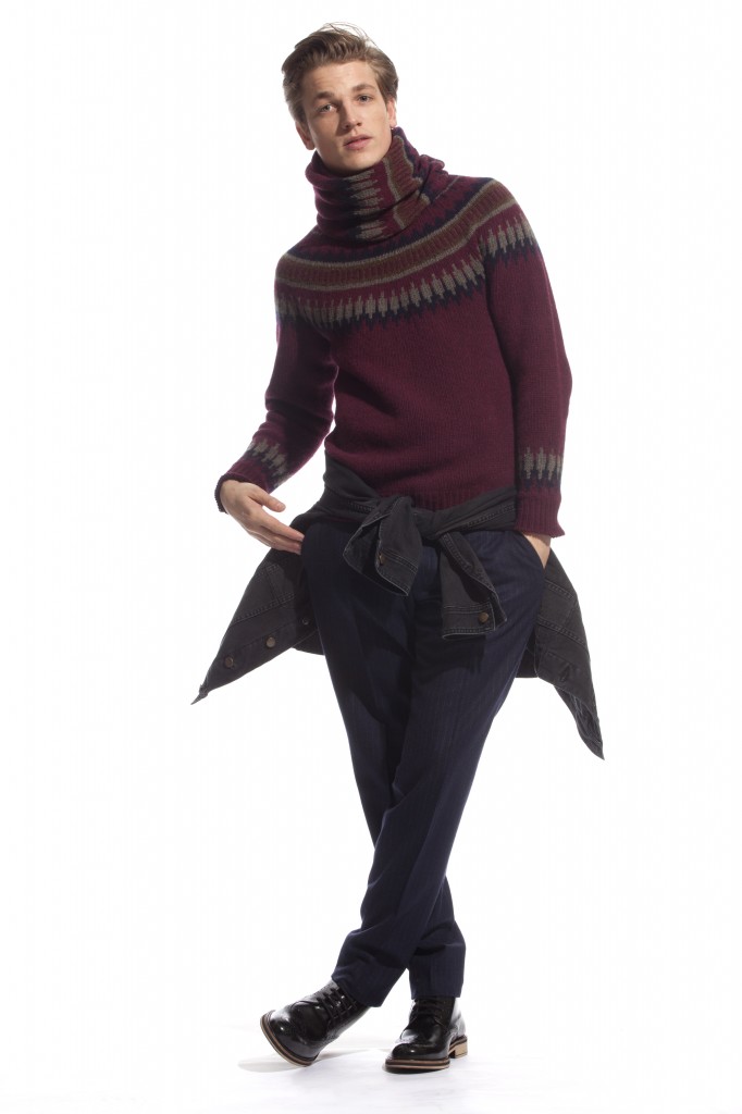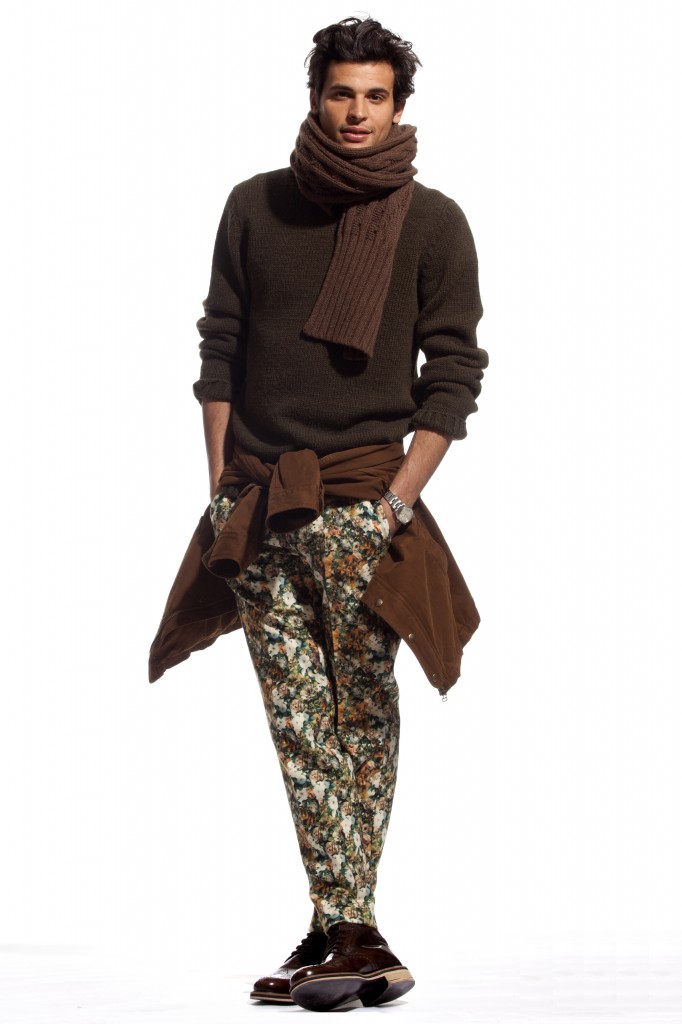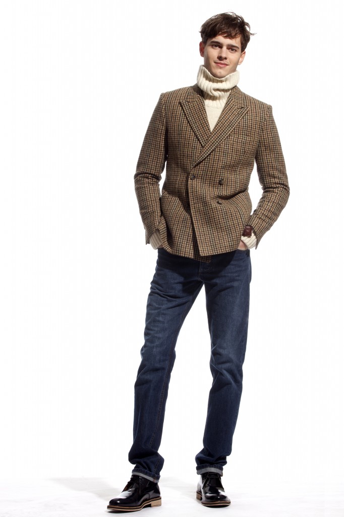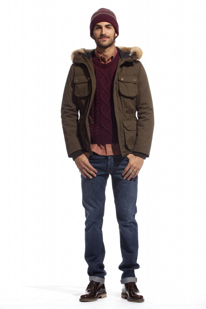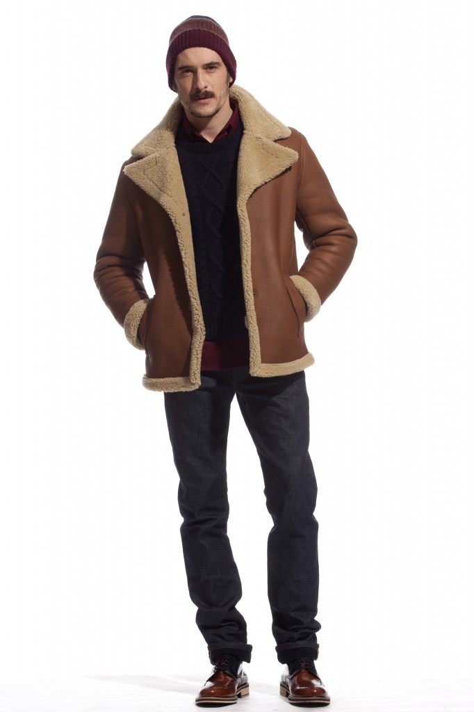 Gros pulls en maille, bonnets et grosses écharpes, vestes croisées en tweed, manteaux en lainage écossais, parka en cuir imprimé tartan, blouson en peau lainée, jeans et pantalons de velours composent un vestiaire de pièces basiques de « Gentleman Farmer » aimant le confort mais ne renonçant pas à une certain élégance.