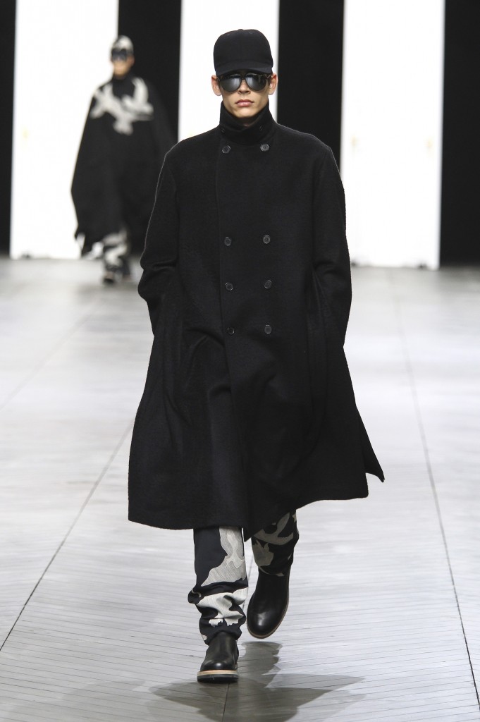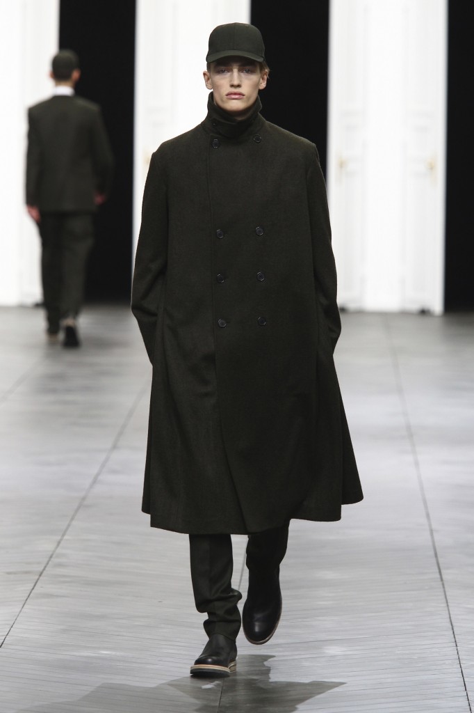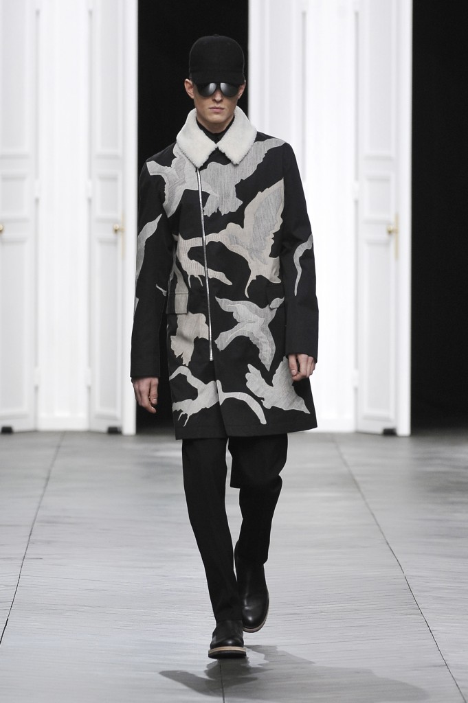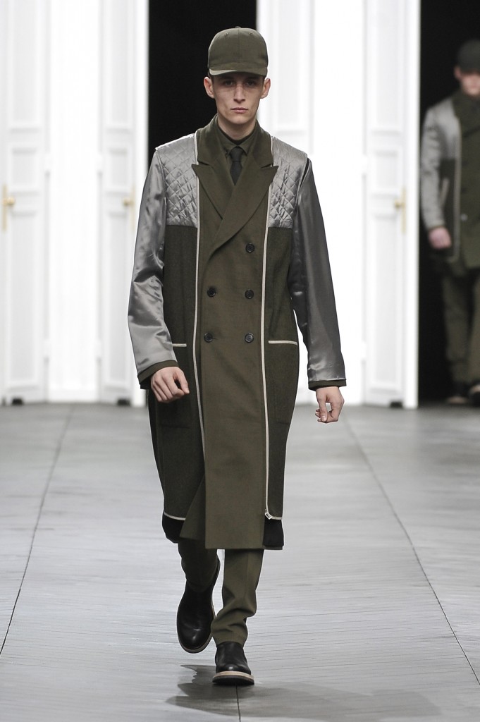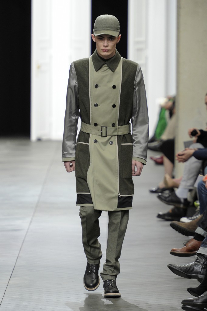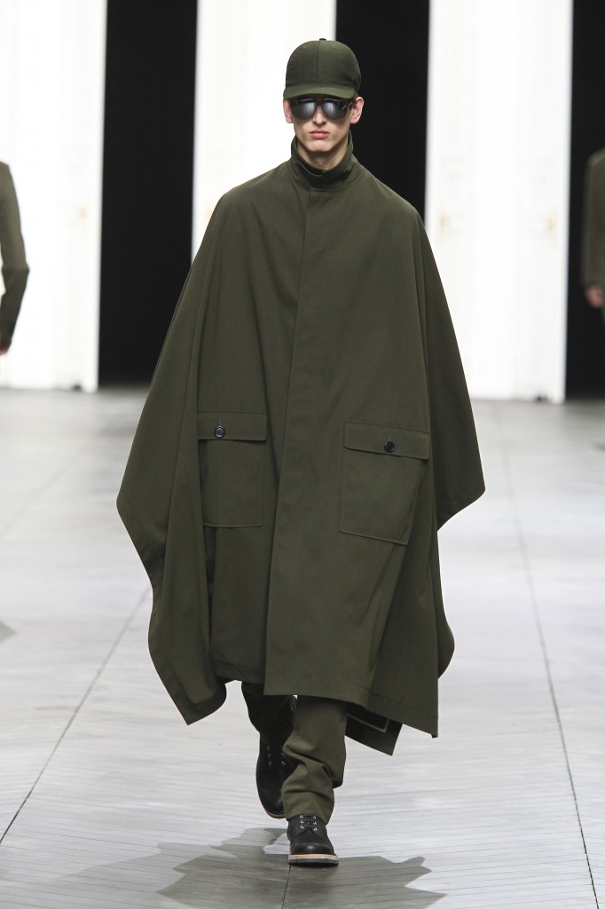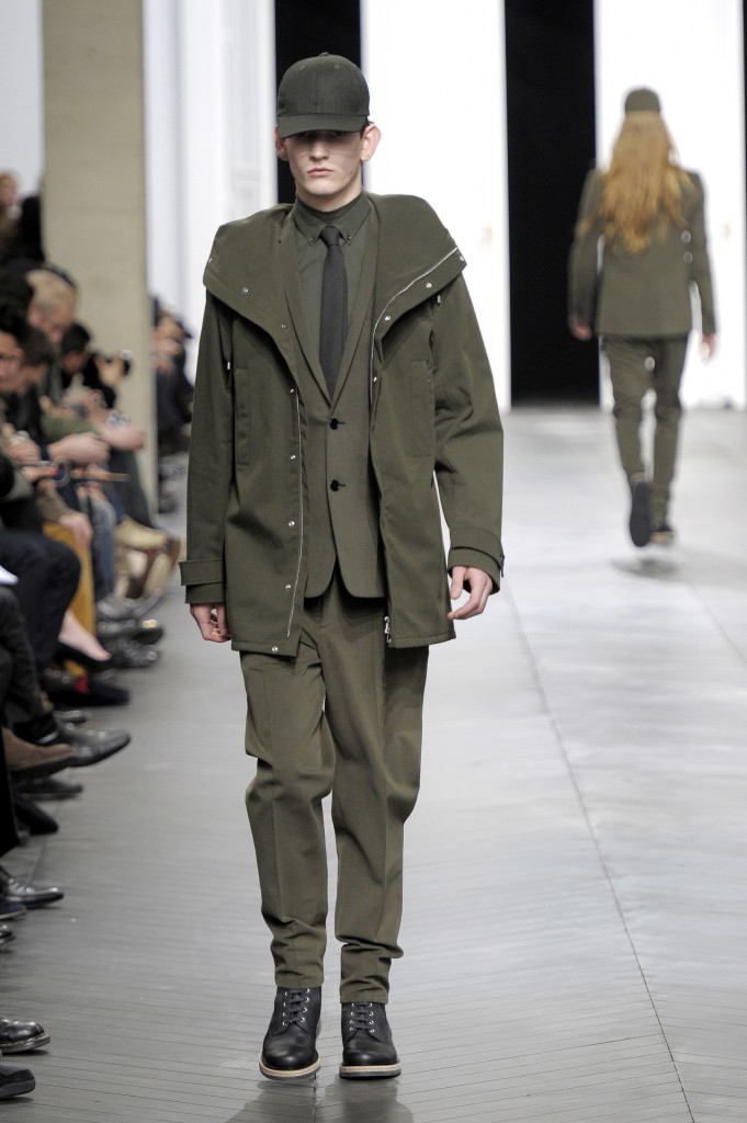 Les couleurs sont sombres et renvoient indéniablement à l’esprit militaire de la collection. Mais plutôt que de reprendre littéralement les couleurs et les imprimés camouflage propres à l’esprit militaire, Kris Van Assche les réinterprète en y ajoutant l’esprit Dior Homme évitant ainsi l’écueil d’un premier degré trop attendu.