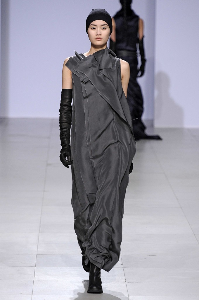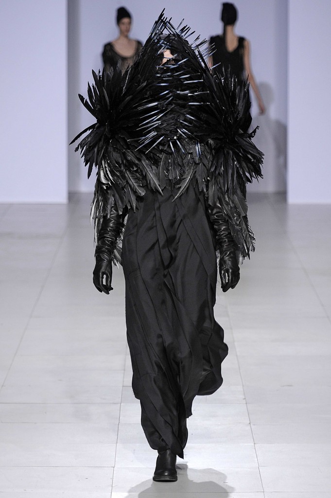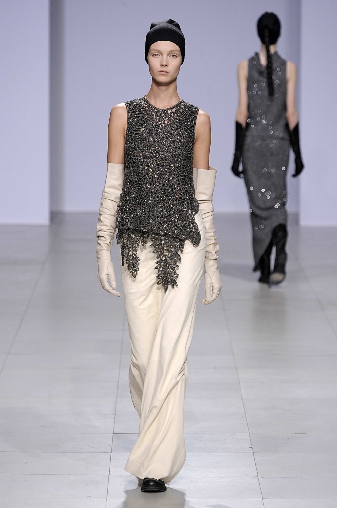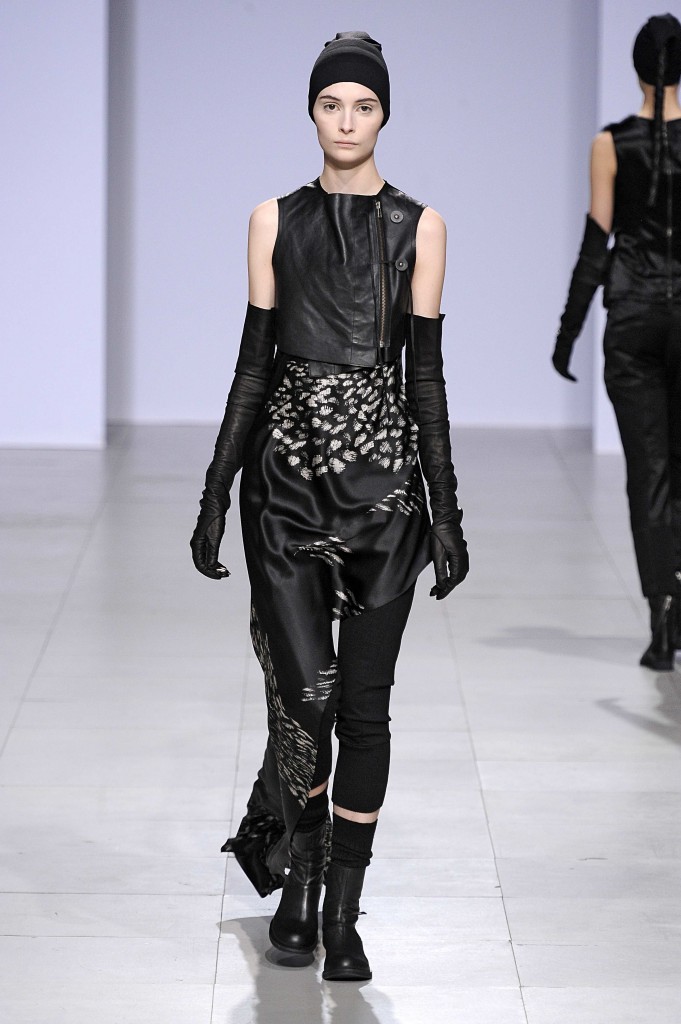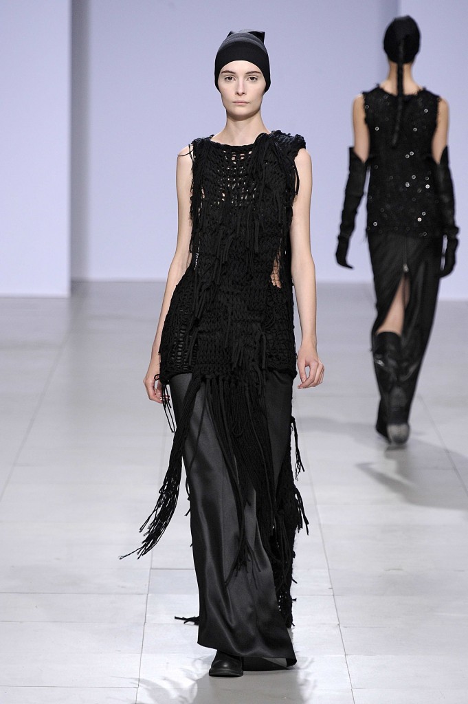 Le noir domine pour l’Automne Hiver 2012 – 2013 malgré quelques touches de blanc et de gris à peine dérangées par un bleu nuit des plus attirants. Kaki et noir forment une alliance inattendue donnant à lieu à de savoureuses compositions. Les jupes et les robes sont longues flattant une silhouette longiligne, accentuée par la longueur extrême de certaines pièces.