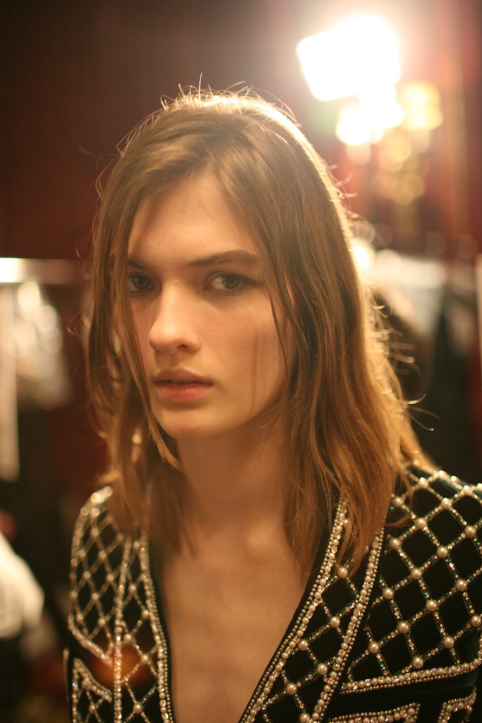 En revisitant le passé à coup de modernité, il a redéfinit l’essence même de la femme Balmain. Devant tant de luxe, elle reste fraîche, naturelle, le cheveu naturel sans brushing comme coiffé juste avec les doigts. Les mannequins Karlie Kloss, Joan Smalls et Kati Nescher ont été maquillées par les équipes de Tom Pecheux.