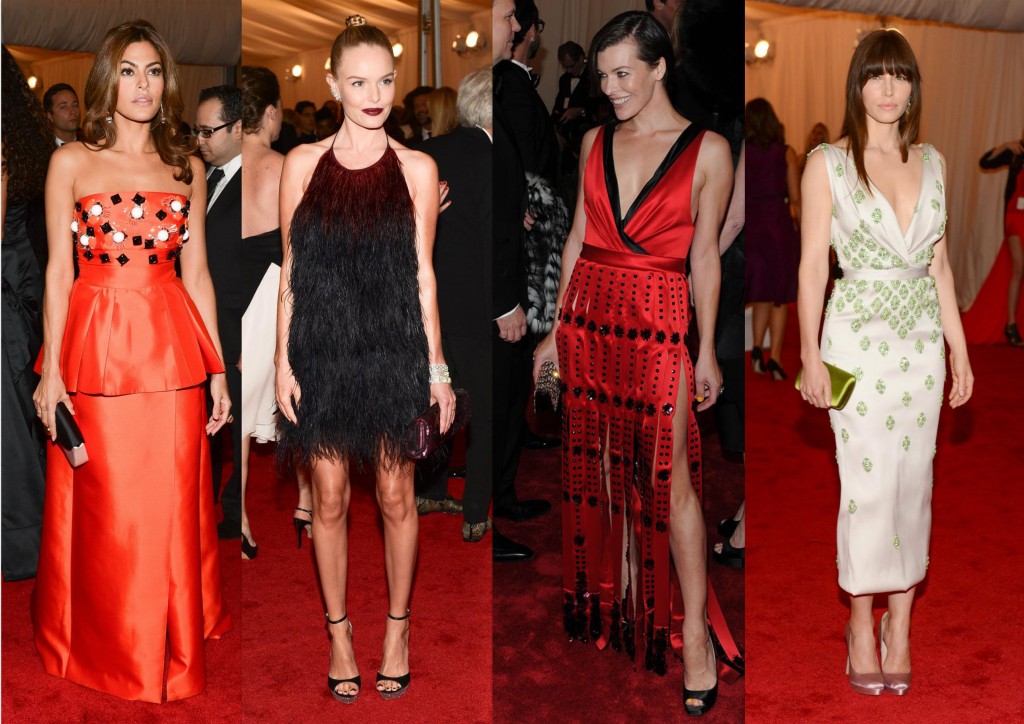Kate Bosworth avait opté pour un look très charleston dans sa mini robe Prada en plumes au dégradé surprenant. Milla Jovovich et Eva Mendes ont, quant à elles, misé sur la couleur toujours en Prada pour rester flamboyantes respectivement en robe bustier orange tangerine et en robe à découpes rouge pétillant. Jessica Biel était simplement sublime dans une robe Prada en satin au profond décolleté.