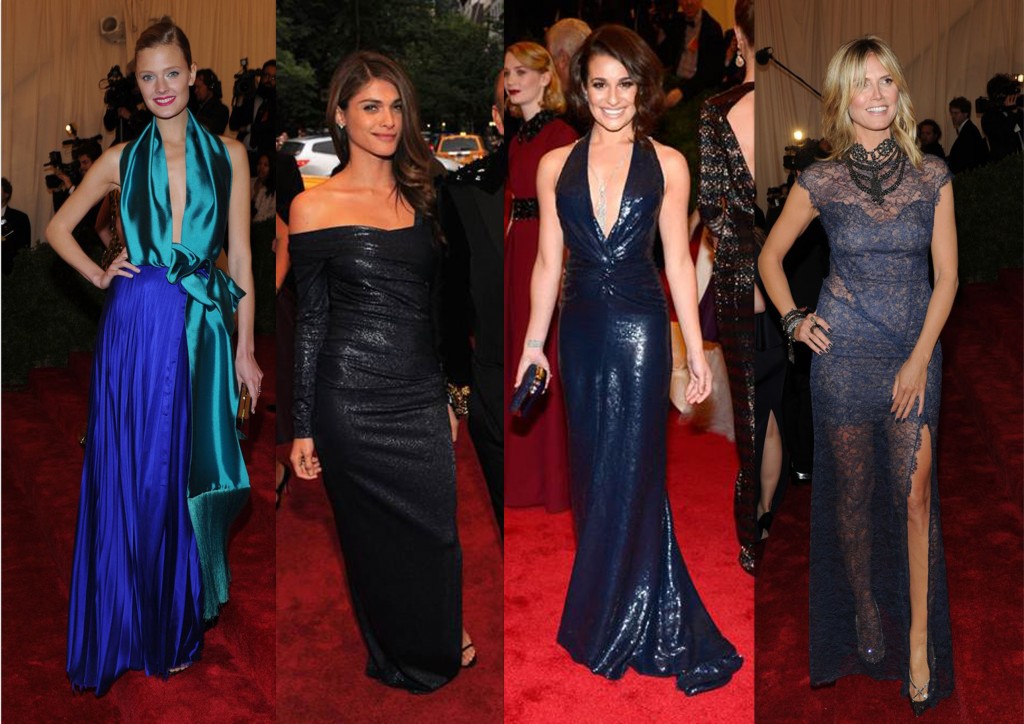 La superbe Lea Michele est arrivée vêtue d’une robe Eileen Diane Von Furstenberg brodée de sequins bleus et une minaudière Tonda bleu de la collection automne-hiver 2012-2013 perchée sur des escarpins Christian Louboutin. Heidi Klum resplendissait dans sa robe longue en dentelle bleue marine Escada dont la fente laissait apparaître des escarpins Christian Louboutin.