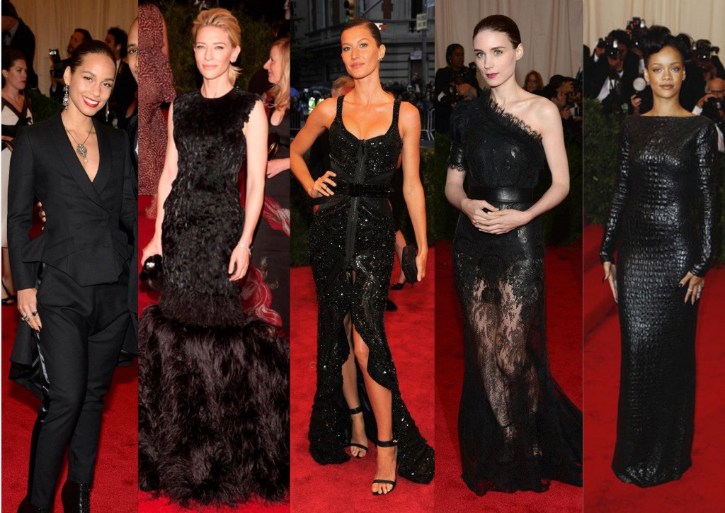 Le noir reste une valeur sûre gage de glamour sur tapis rouge. Alicia Keys avait opté pour un smoking . Cate Blanchett était absolument divine dans sa robe robe fourreau en plumes noires Alexander McQueen de la collection Automne Hiver 2012-2013. Gisele Bündchen s’était glissée dans une robe à sequins noire seconde peau Givenchy imaginée spécialement pour elle par Riccardo Tisci.