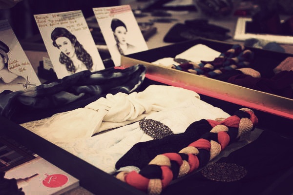 Côté accessoires, un grand choix de créateurs nous est également proposé, des headbands rétro Les Créations d’Anaïs aux bijoux Mademoiselle S en passant par les foulards artistiques Antagoniste et les très élégantes chaussures de Patricia Blanchet.