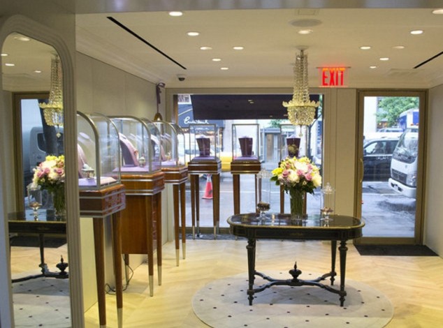 Parfait équilibre entre le luxe, la tradition et la modernité, la boutique de Madison Avenue abrite des pièces de haute et de fine joaillerie, des montres, les boutons de manchette et les pièces en argent de la célèbre maison entourés aux murs par des illustrations originales de Peter Carl Fabergé.