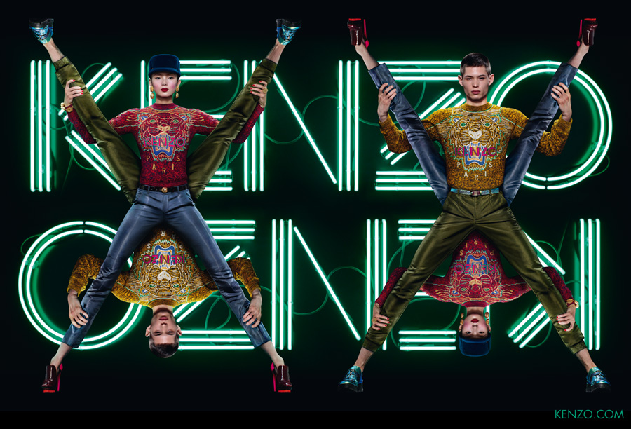 L’image, qui nous donne déjà un avant goût de l’originalité et du ton de la campagne, est colorée et pleine de vie. Les mannequins Xiao Wen et Simon Tabbah se superposent formant un X et portent des sweats brodés du fameux tigre, emblême de la marque Kenzo. Construite à la manière d’un jeu de carte, elle nous donne les nouvelles règles du jeu de la marque.