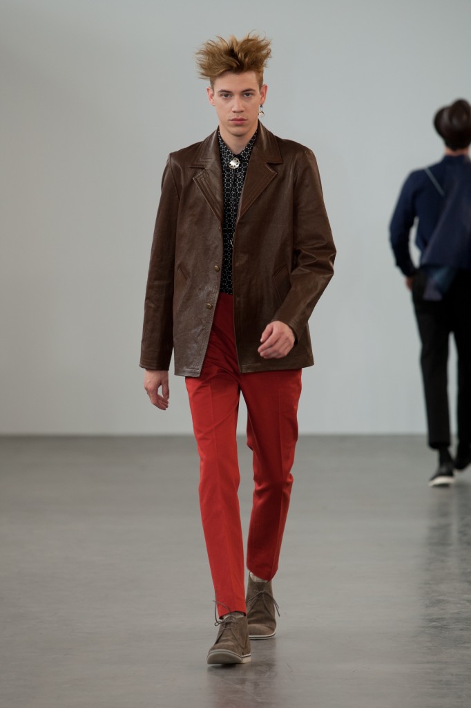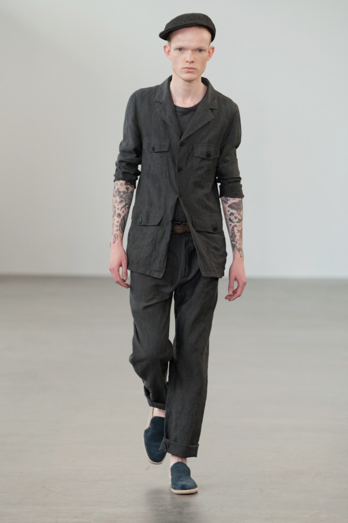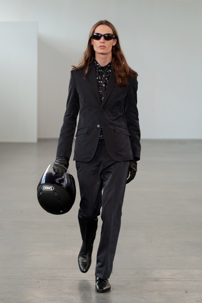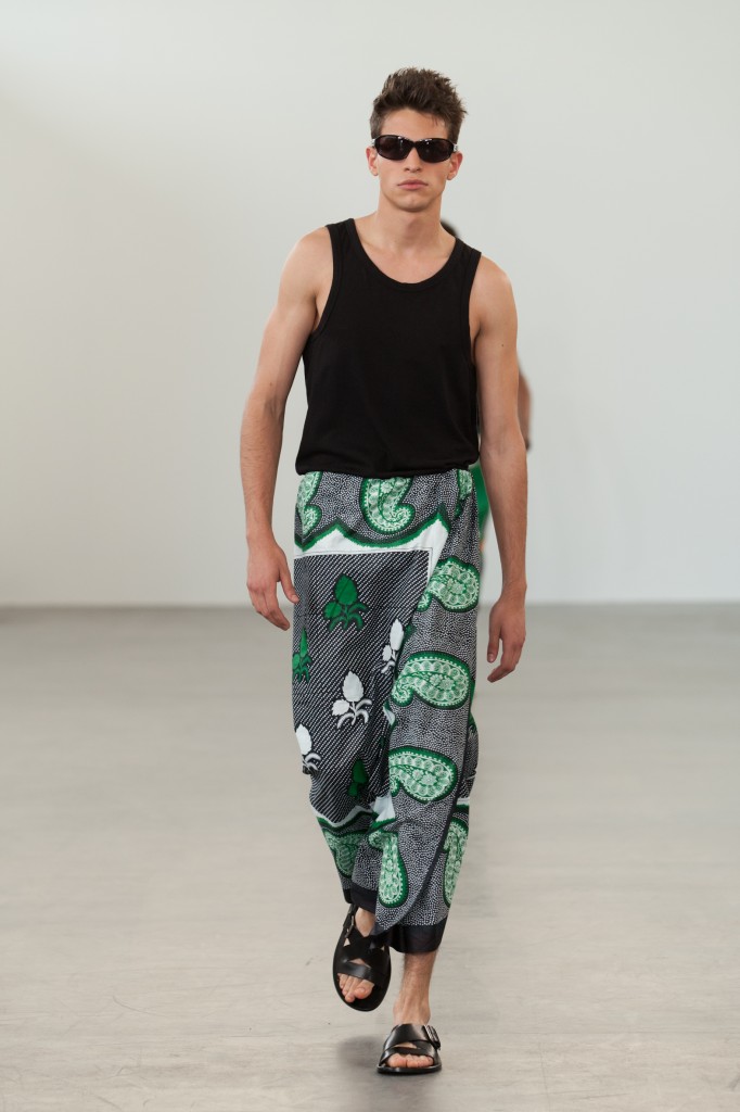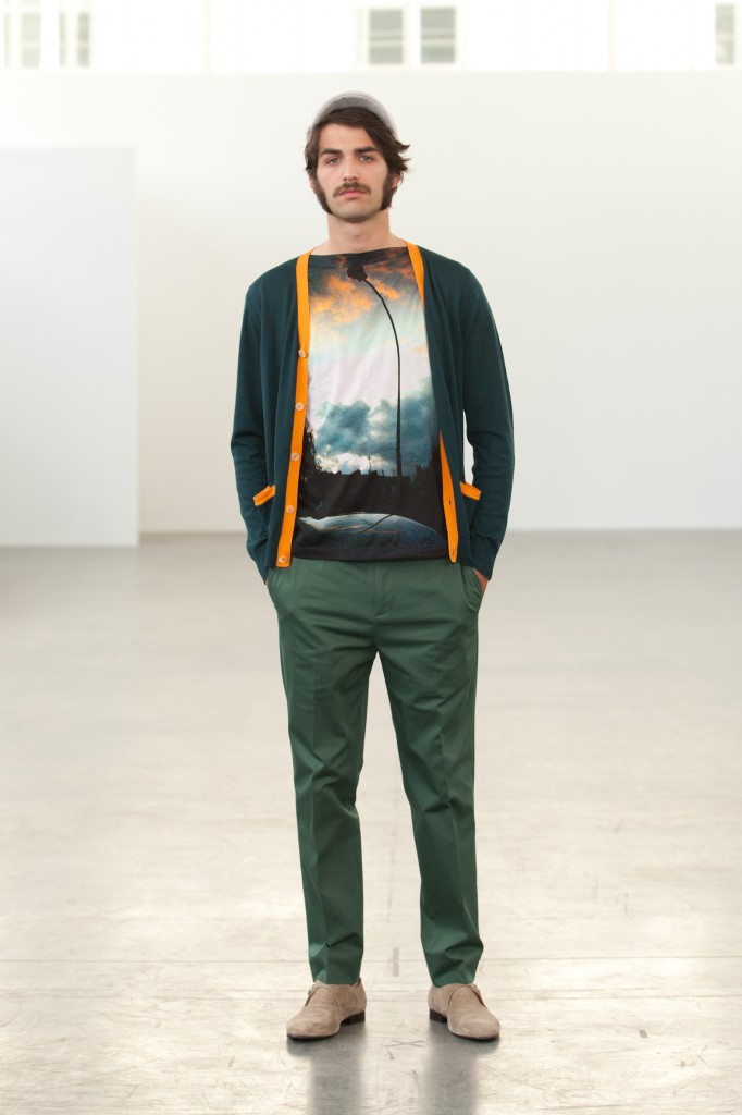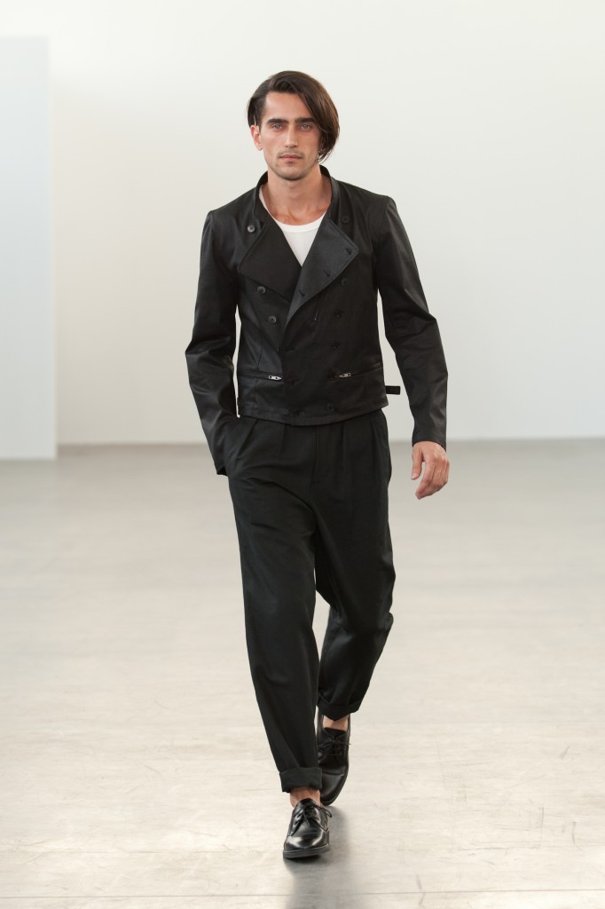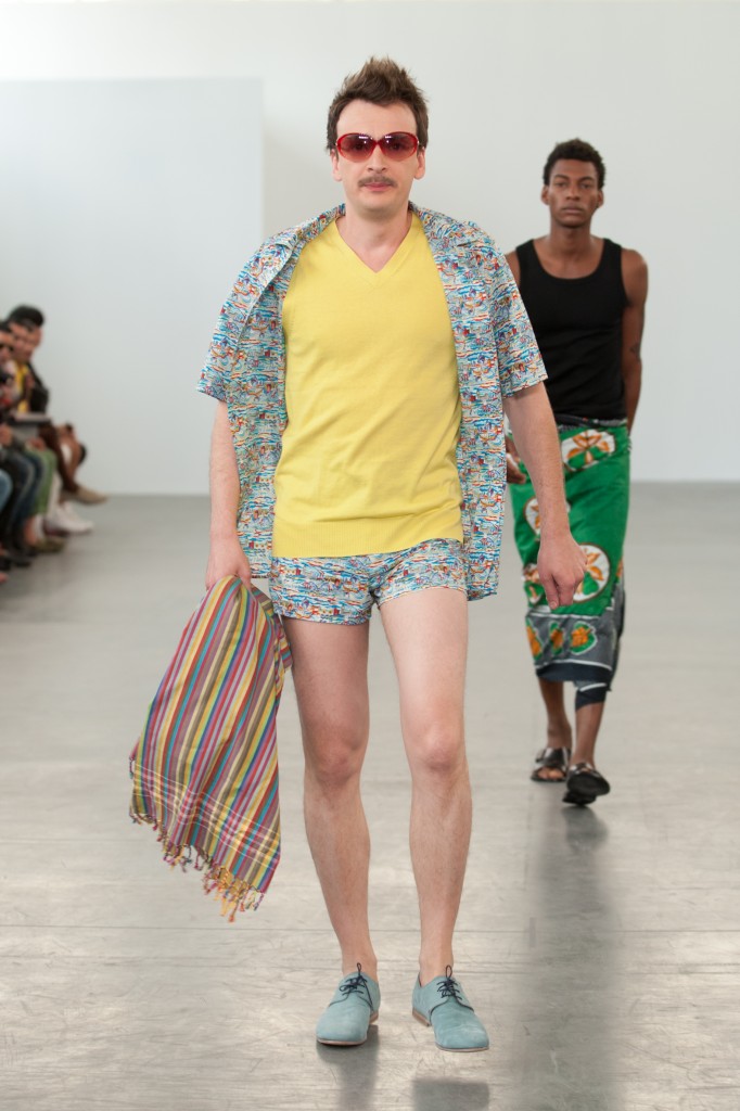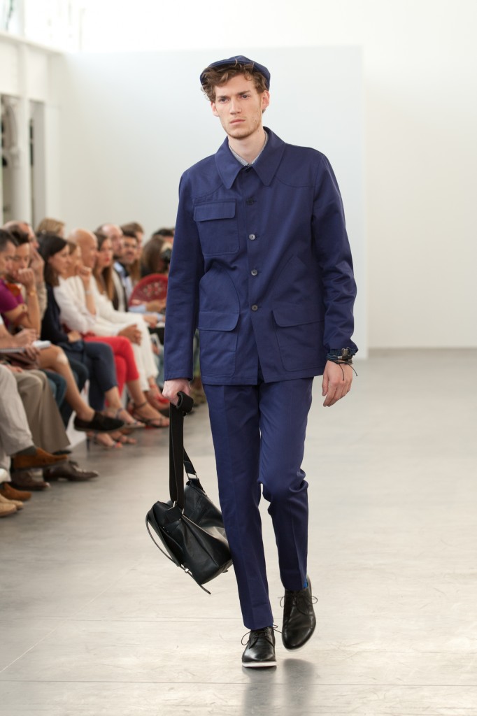 Pour ce dernier jour de la Fashion Week Hommes, c’est dans le cadre arty de la Maison des Métallos que la créatrice nous convie pour la présentation de sa collection Hommes Printemps Été 2013. Sur une composition musicale orchestrée par Hugues Reip, des mannequins hommes et femmes défilent, seuls ou à deux, proposant un vestiaire complet et plein d’insouciance parfait pour les beaux jours.