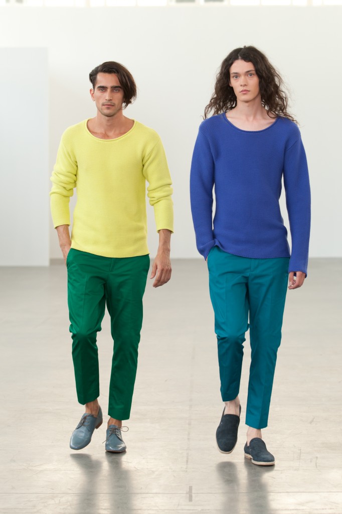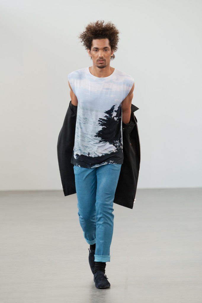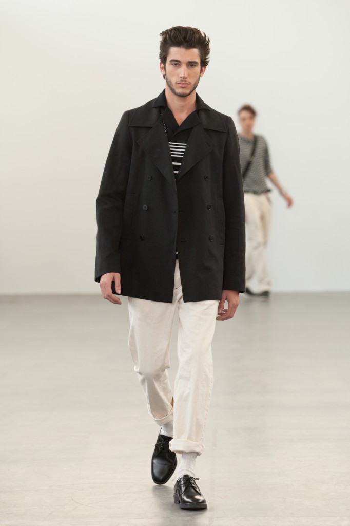 Des néo-basiques à la coupe affûtée se succèdent sans se ressembler revisitant avec beaucoup d’humour le vestiaire masculin. A travers cette collection cosmopolite et pleine d’énergie, Agnès B. nous a offert un agréable dépaysement dans un défilé décalé à l’ambiance décontractée avec une ligne qui sent bon le voyage et un été dans les calanques ensoleillées marseillaises.