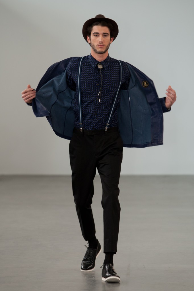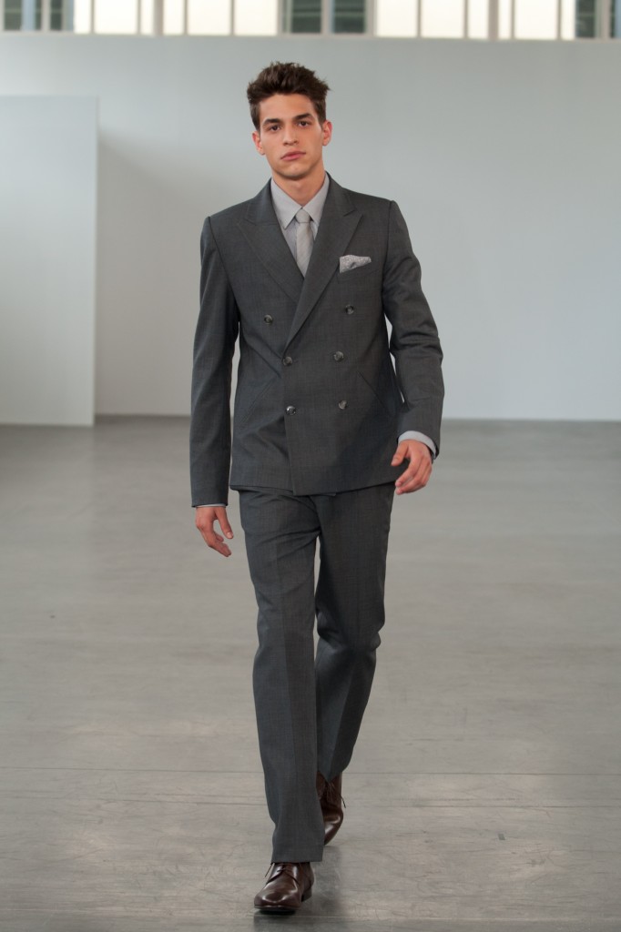 Les tenues plus formelles font leur apparition, appelant des sorties le soir. Les costumes parfaitement coupés sont dans des harmonies de gris. Les vestes sont souvent croisées avec deux boutons à l’allure plus décontractée. C’est à travers les accessoires que l’idée de voyage transparaît.