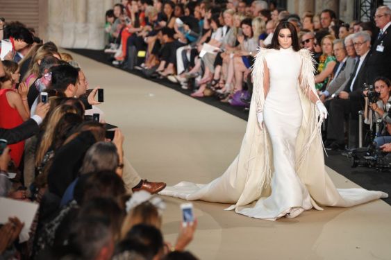 La robe de mariée finale portée par l’actrice chinoise Fan BingBing est une prouesse. Cette robe fourreau à effet de cape bordée de plumes de silicone façon fausse fourrure n’est pas sans rappeler la silhouette d’un cygne majestueux s’avançant sur le catwalk.