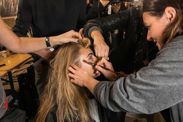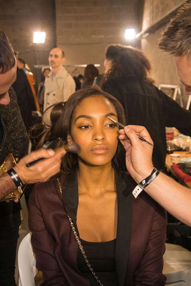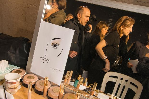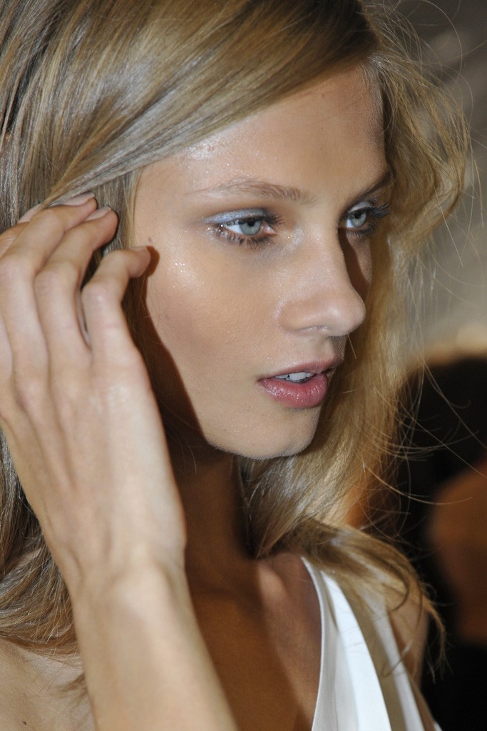 Côté coiffure, un savant coiffé décontracté inspiré des filles françaises parfait une allure majestueuse. Quelques minutes avant le défilé, le chic français commençait à gagner les coulisses. Les tops Arizona Muse, Constance Jablonski et Anja Rubik illuminent ses quelques instants avant le rush.