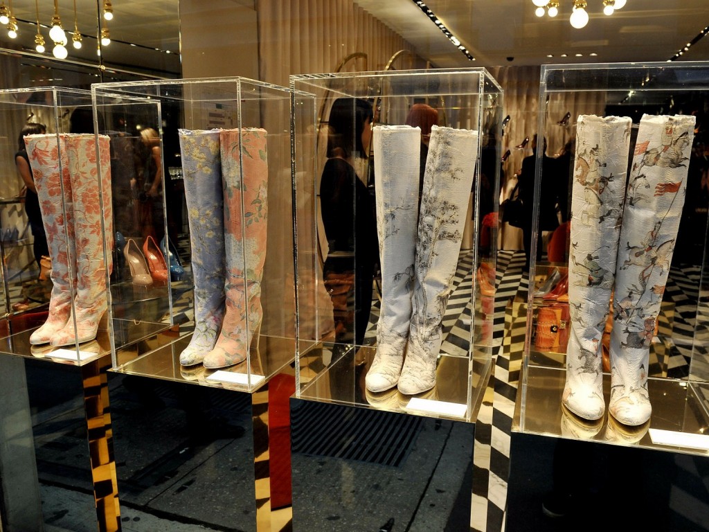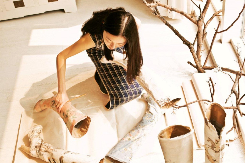 Ornées de fleurs, d’arbres, de chevaux ou renvoyant à l’esthétique des paysages shanshui, les bottes étaient présentées dans des vitrines de verre telles de véritables œuvres d’art.