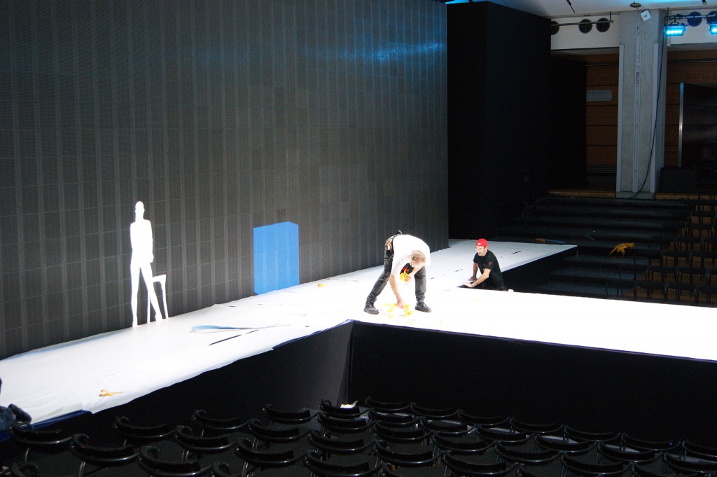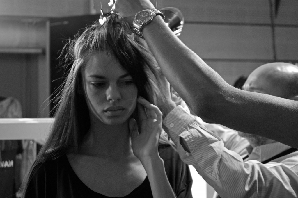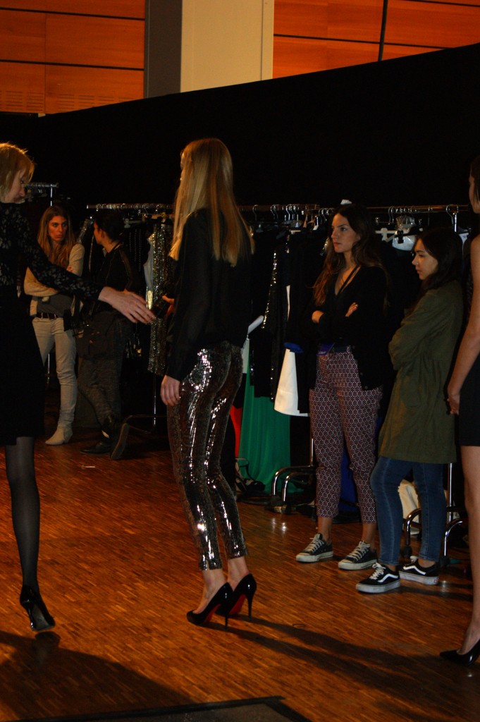 La pression monte pour nos apprenties mannequins. Les répétitions s’enchaînent sur le podium, encore recouvert du fameux plastique de protection. Les conseils redoublent. Certaines ne semblent pas encore tout à fait au point. L’une perd sa chaussure quant une autre balance trop les bras, certaines ont la mâchoire serrée.