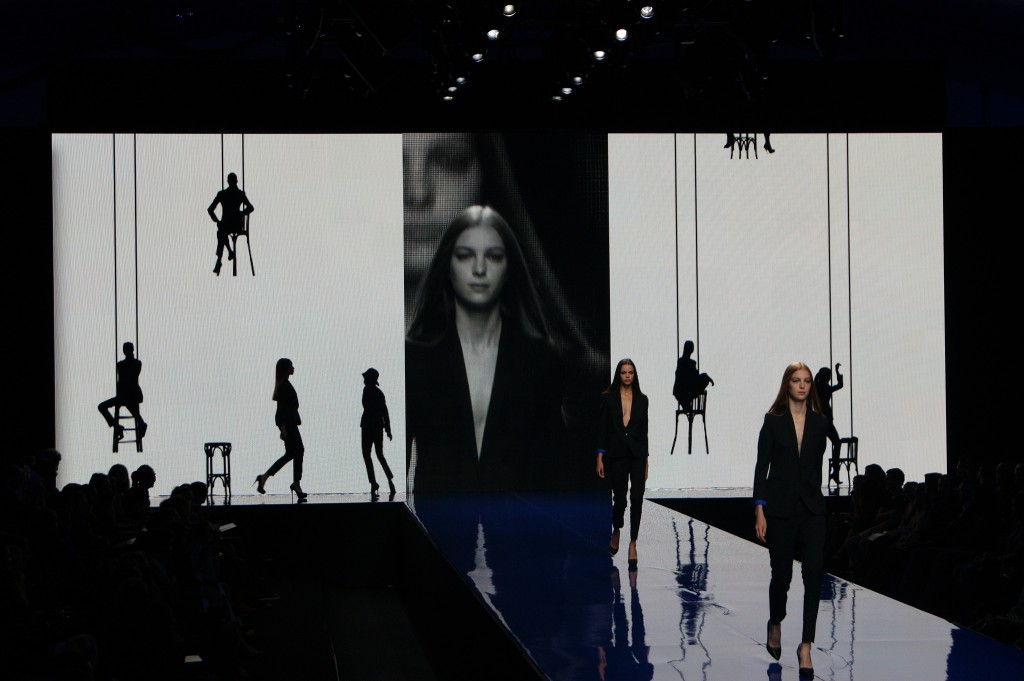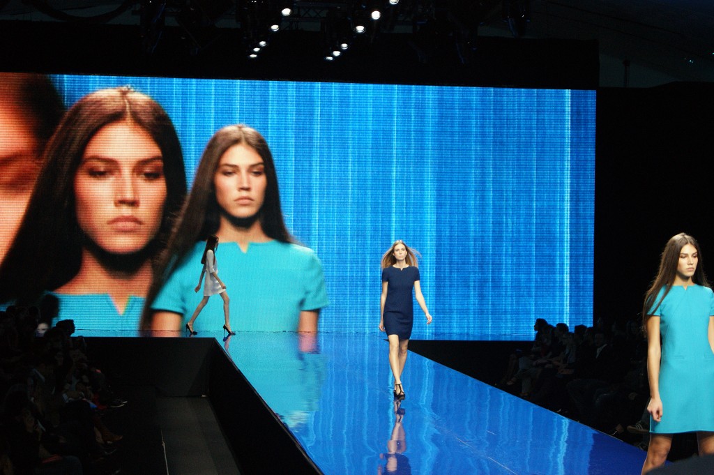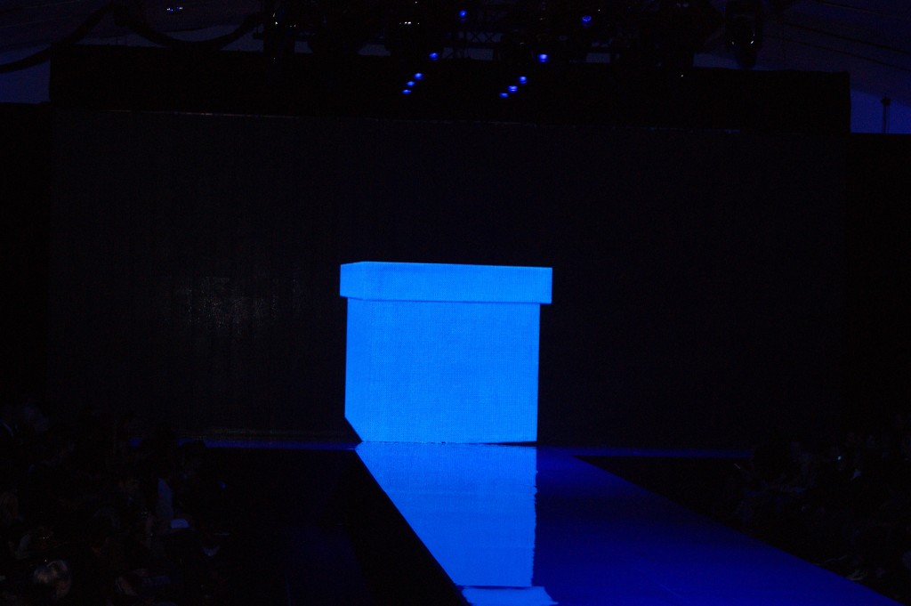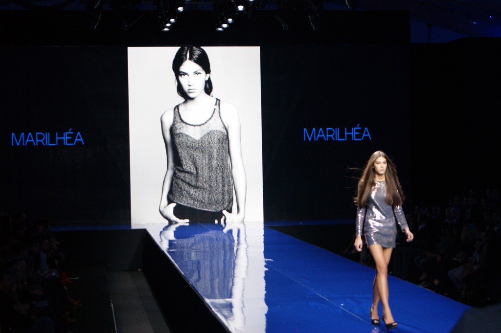 Les lumières s’éteignent, la musique retentit. Le show débute avec une vidéo réalisée par Bjorn Tagemose, artiste iconoclaste et touche-à-tout. Marilhéa est la première à fouler le podium avec une robe à paillettes BCBG Max Azria.