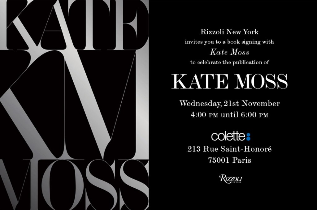 A l’occasion de la sortie de son livre Kate: The Kate Moss Book, sorti en France le 7 novembre, la sublime Kate Moss sera présente chez Colette pour une séance de dédicace exceptionnelle aujourd’hui de 16h à 18h. Réalisée en étroite collaboration avec le top-model, véritable rétrospective de la fabuleuse carrière de la star, The Kate Moss Book est le témoignage unique et très personnel d’une carrière exceptionnelle, depuis les premières photos de l’étoile montante jusqu’à son statut actuel de véritable icone de la mode.