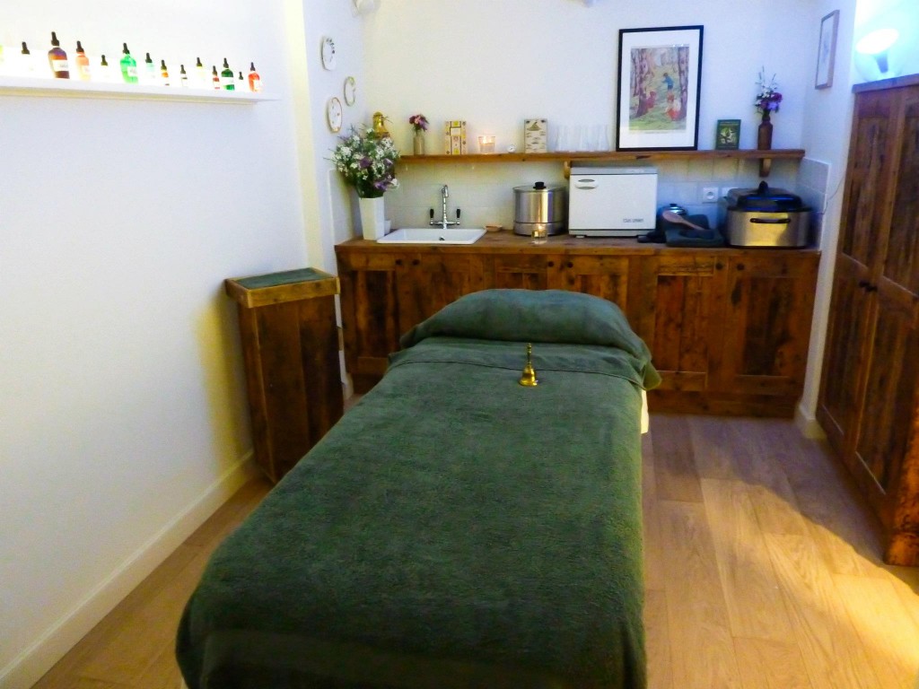 Cosy et un brin rétro, la « cuisine » du spa est le point de départ incontournable de chaque soin. Accueilli(e)s par une praticienne autour d’une tasse de thé, vous lui ferez rapidement des confidences sur votre type de peau afin que le soin soit le plus adapté aux besoins de votre peau afin d’écouter religieusement les petites explications qu’elle vous donnera.
