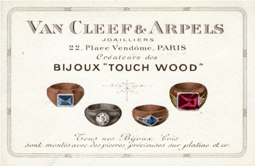 Depuis le début du XXe siècle, le bois pare les créations de la Maison venant s’ajouter aux montres, pendulettes et bagues serties de pierres précieuses. Dans les années 70, la maison crée des bracelets en bois ponctués de plaques ovales en or ornées de différents messages au fil du temps.
