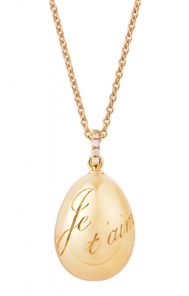 L’œuf-pendentif ‘Je T’aime’ en or jaune 18 carats est disponible au prix de 3.228€ sur la boutique en ligne de Fabergé, ou bien dans les boutiques de Londres, Genève et Hong Kong.