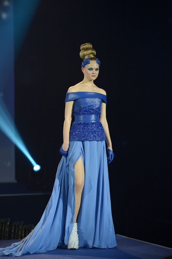 Le créateur allemand MICHALSKY s’est inspiré de la métamorphose étincelante de Cendrillon avant d’aller au bal et a imaginé une robe de Cendrillon dans un camaïeu de bleus dans la plus pure tradition Disney.