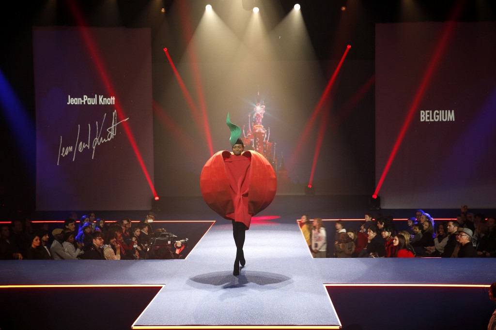Ainsi Jean-Paul Knott apporte sa touche personnelle au grand défilé de mode de Minnie et nous invite à croquer dans la pomme défendue de Blanche Neige et les Sept Nains.