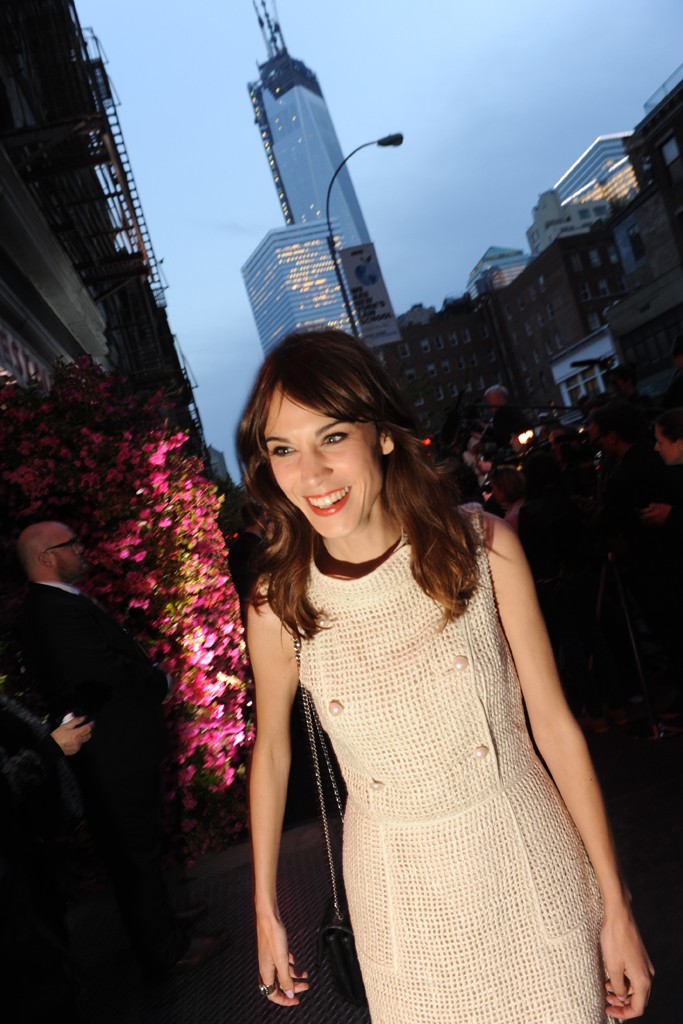 La présentatrice de télévision et it-girl Alexa Chung était bien sûr de la partie, vêtue d’une charmante robe en tweed Chanel beige issue de la collection Printemps-Eté 2013 aux boutons de nacre. Elle a fait entièrement honneur à son hôte avec ses Mary-Jane Chanel bicolores beige et noir et son sac matelassé.