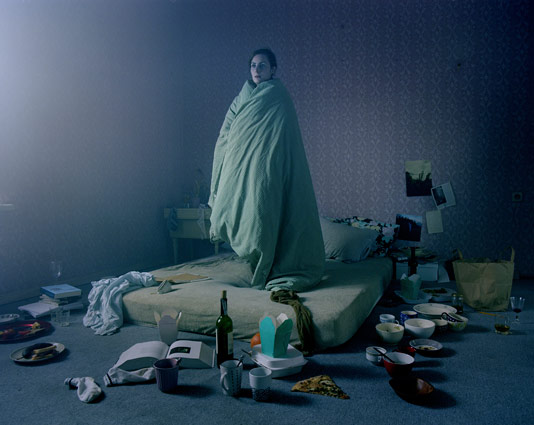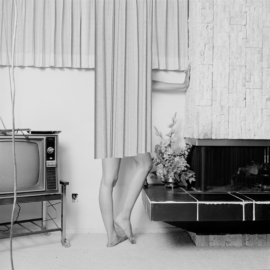 Des pin-up nues se couvrent pudiquement dans les clichés d’Eva Stenram. La photographe suédoise présente Drape, Dans laquelle elle détourne des vieilles photos de pin-up posant dans des décors devant des rideaux ou tentures. Par un travail de retouche, elle étend les rideaux de façon à partiellement cacher le corps de ces femmes élargissant ainsi la frontière entre intime et public.