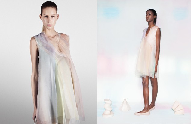 La Française Marion de Raucourt a présenté une collection minimaliste aux lignes pures et aux tons neutres. Elle privilégie une mode pratique sans une seule couture grâce à de savants pliages inspirée du système de montage d’un packaging.