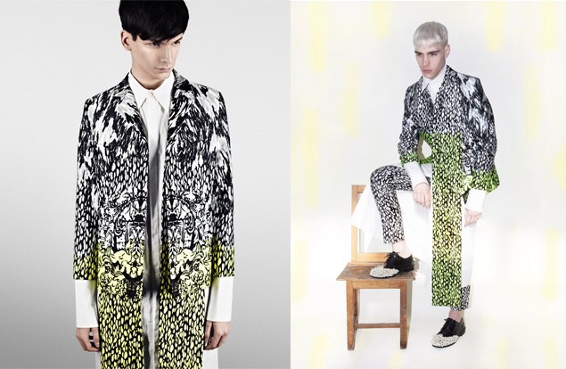Henning Jurke a imaginé une soirée des années folles, une fête allégorique. Le créateur allemand a introduit des touches féminines au vestiaire masculin, allant jusqu’à broder des cristaux Swarovski multicolores sur un smoking.