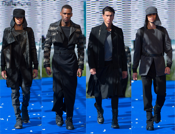 Le Grand Prix de Mode Homme a été remporté par le duo formé par le Coréen Kyuho Lee, 24 ans, et la Française Cécile d’Allançon, 25 ans, tous deux formés à l’ESMOD, pour une collection à l’approche « jungle urbaine » subtile.