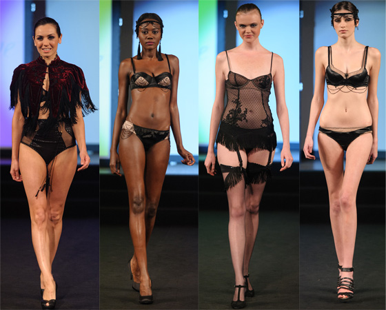 Entre burlesque et rétro, elle crée culottes hautes, longues combinaisons en dentelles et paillettes noires dans une ambiance Magie du Cirque. Acrobate, dompteuse et contorsionniste aux courbes voluptueuses ont enfin une lingerie à leur mesure.