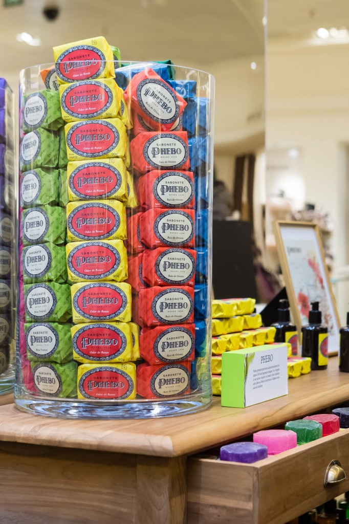 La parfumerie haut de gamme Phebo nous propose les eaux de Cologne qui ont fait sa renommée dans tout le Brésil ainsi que les savons ovales à base d’essence de pau-rosa, de santal ou de clou de girofle, que les Brésiliens s’arrachent.