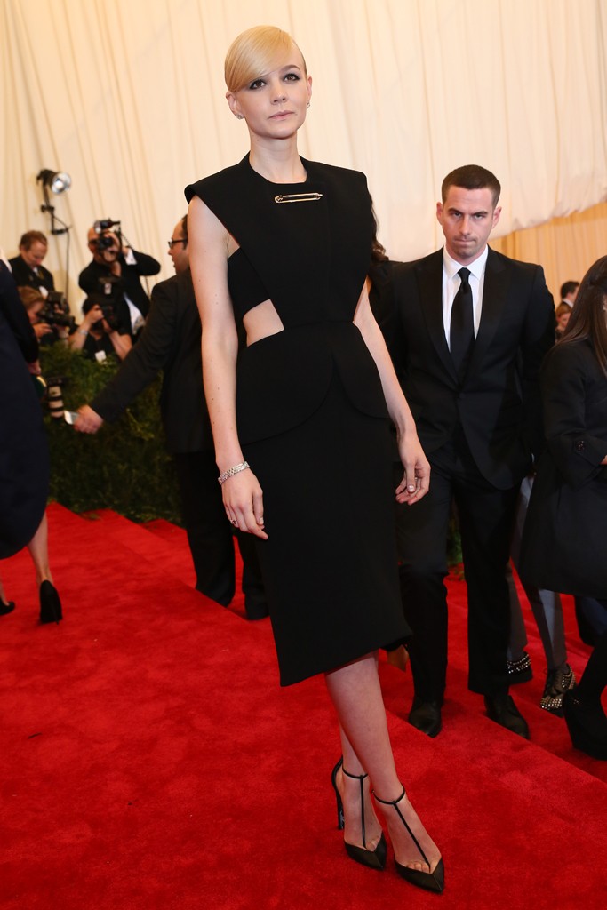 Carey Mulligan, à l’affiche du très attendu The Great Gatsby, rendait hommage à l’élégance de son personnage en choisissant un look punk chic minimaliste accessoirisée de bijoux Tiffany & co. Sa robe Balenciaga aux découpes savamment placées était soutenue par une épingle à nourrice dorée. On aime les stilettos toujours signées Balenciaga rappelant l’angle de la découpe en V de la robe.