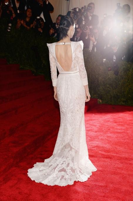 Rooney Mara co-présidente du gala aux côtés du créateur Riccardo Tisci avait revêtue pour l’occasion une sublime longue robe blanche en dentelle Givenchy Haute-Couture par Riccardo Tisci au profond décolleté devant et dans le dos.