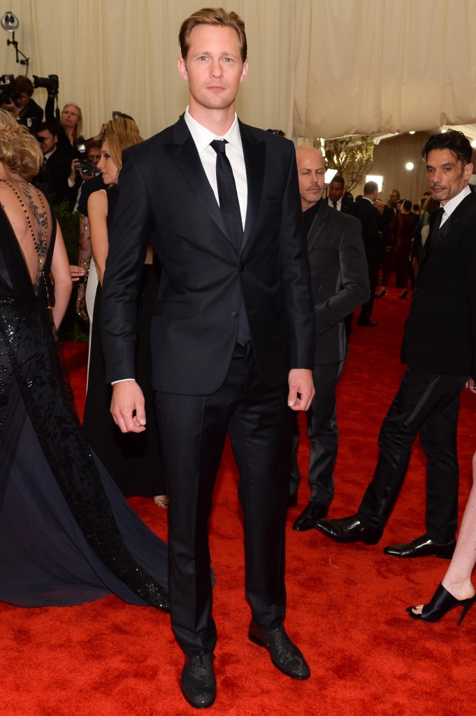 Alexander Skarsgard, le séduisant vampire de True Blood, est apparu dans un costume Calvin Klein noir et cintré.