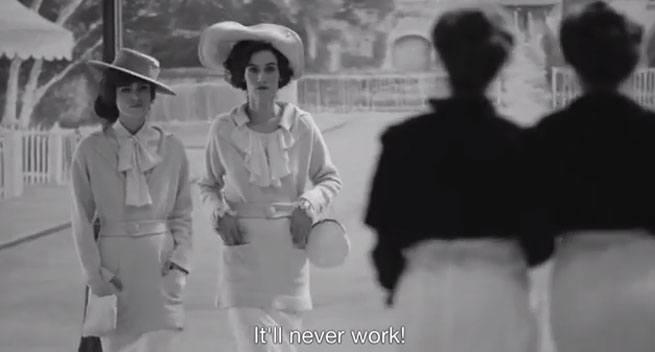 Débutant son court-métrage par deux femmes, chignon haut et jupe longue, s’arrêtant devant la vitrine de la boutique puis plusieurs femmes passant devant la boutique dans un style d’époque, il montre combien Gabrielle Chanel était avant-gardiste pour son époque, déroutant ses contemporaines avec un style résolument différent.
