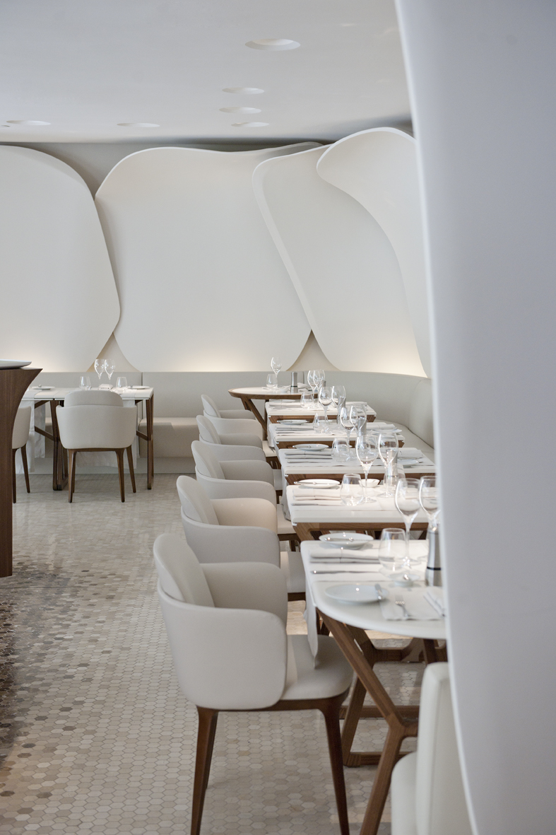 Aucun risque de voir Thierry Marx succomber à la facilité tant il aime ajouter sa touche créative et esthétique, d’inspiration planétaire aux fondamentaux de notre cuisine. Les plats s’enchaînent alors comme autant d’envolées poétiques des papilles : « Œuf mollet croustillant, espuma de brocoli et fleurs de ciboulette », « Espadon façon tataki, oignons nouveaux, polenta au citron », ou encore « Filet de canette rôti, navet daikon à l’orange, choux pack choï croquant ».