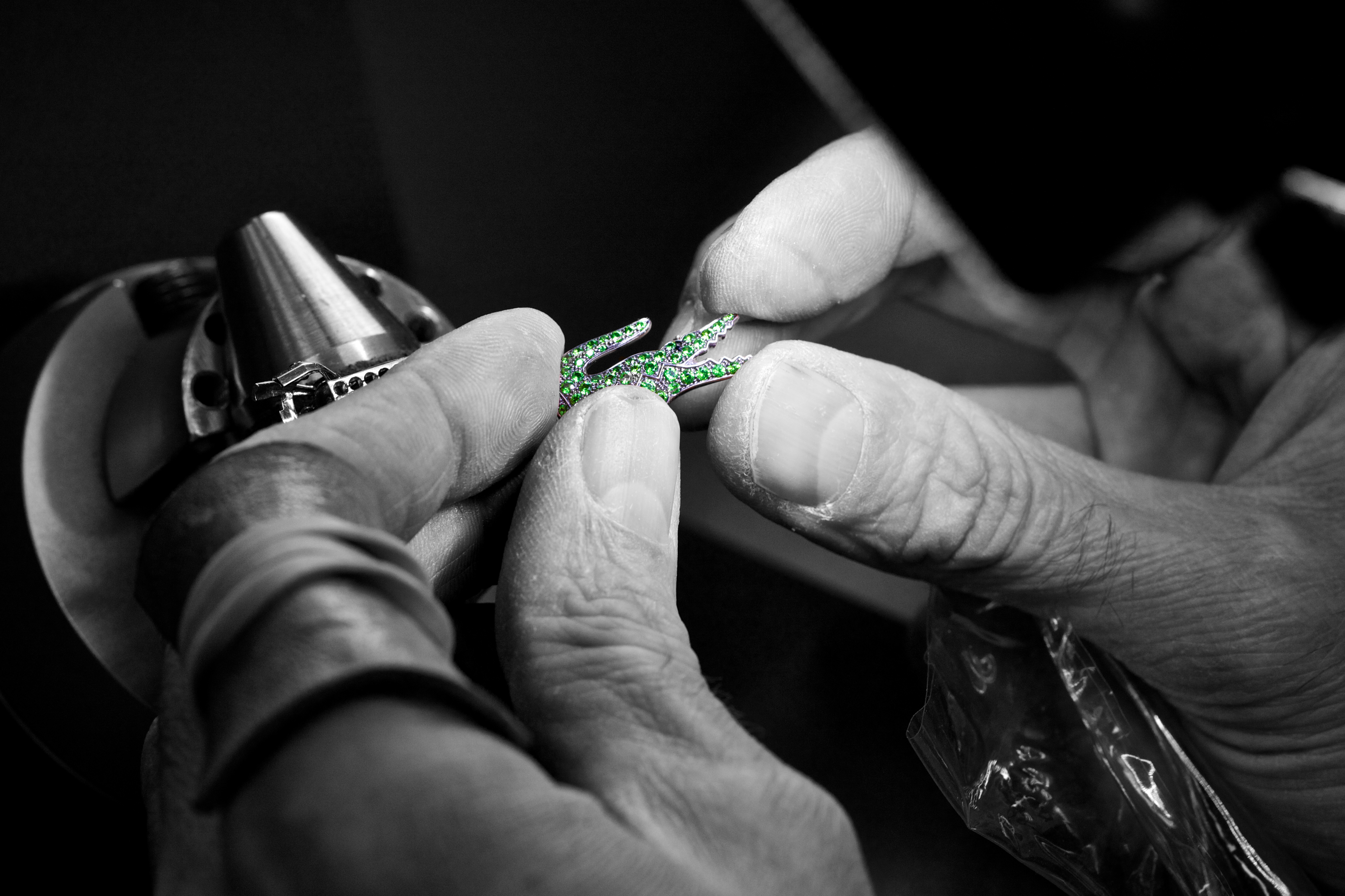 La Maison Boucheron a ainsi créé deux broches uniques en diamants et tsavorites inspirées du crocodile légendaire.