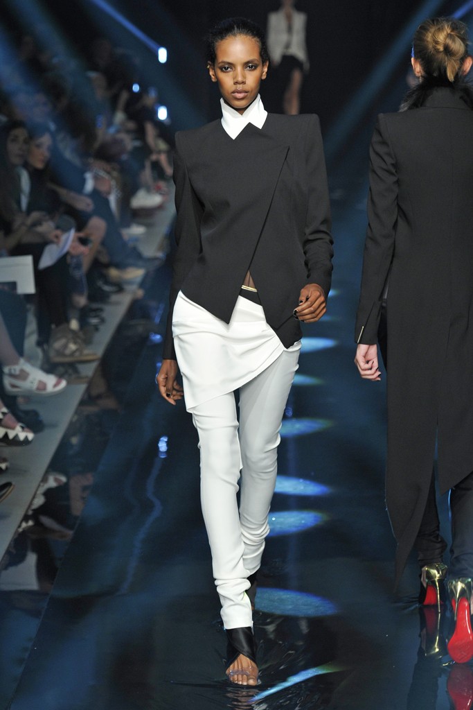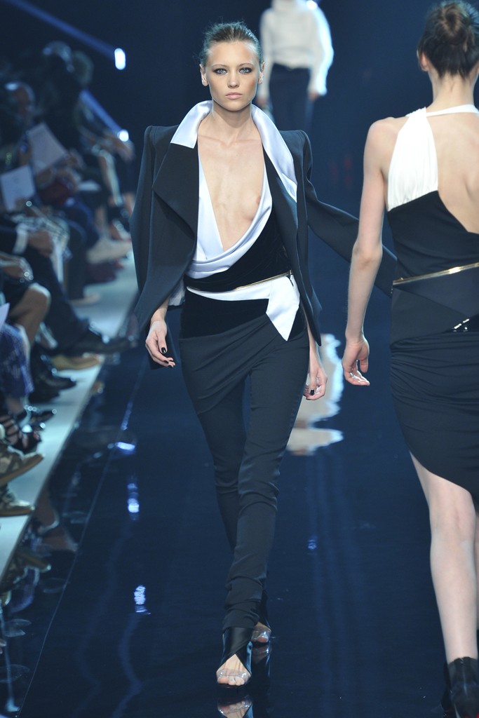 Dominée par une douce bichromie où le noir et le blanc font un joli pas de deux, la collection Automne Hiver 2013 -2014 révèle une femme moderne, glamour et terriblement sensuelle qui, pour soudainement adoucir les contours de l’amazone à la séduisante sophistication qu’elle est devenue, se pare d’un bleu tendre profondément hypnotique.