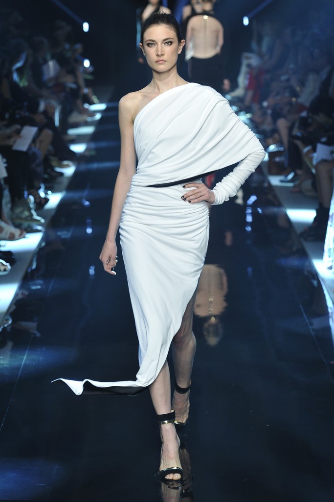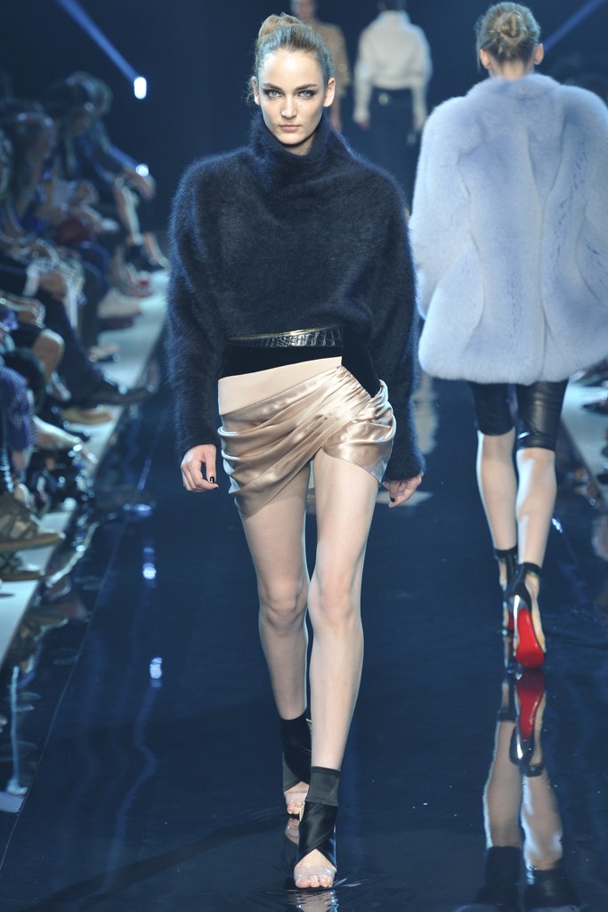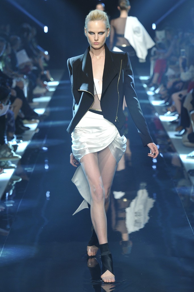 Pour l’Automne-Hiver 2013-2014, Alexandre Vauthier prône une féminité dominante. Profonds décolletés, jupes hautement fendues, épaules marquées, pièces près du corps, perfection des coupes et asymétrie, les codes de la maison sont bien là dans un juste équilibre qui n’a qu’un but et le réussit plutôt bien : sublimer la femme.