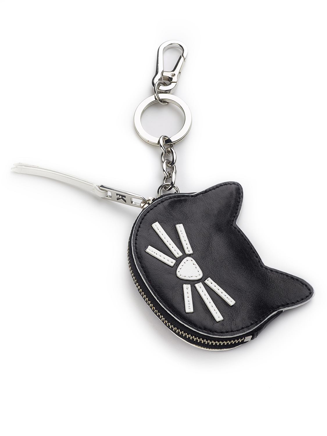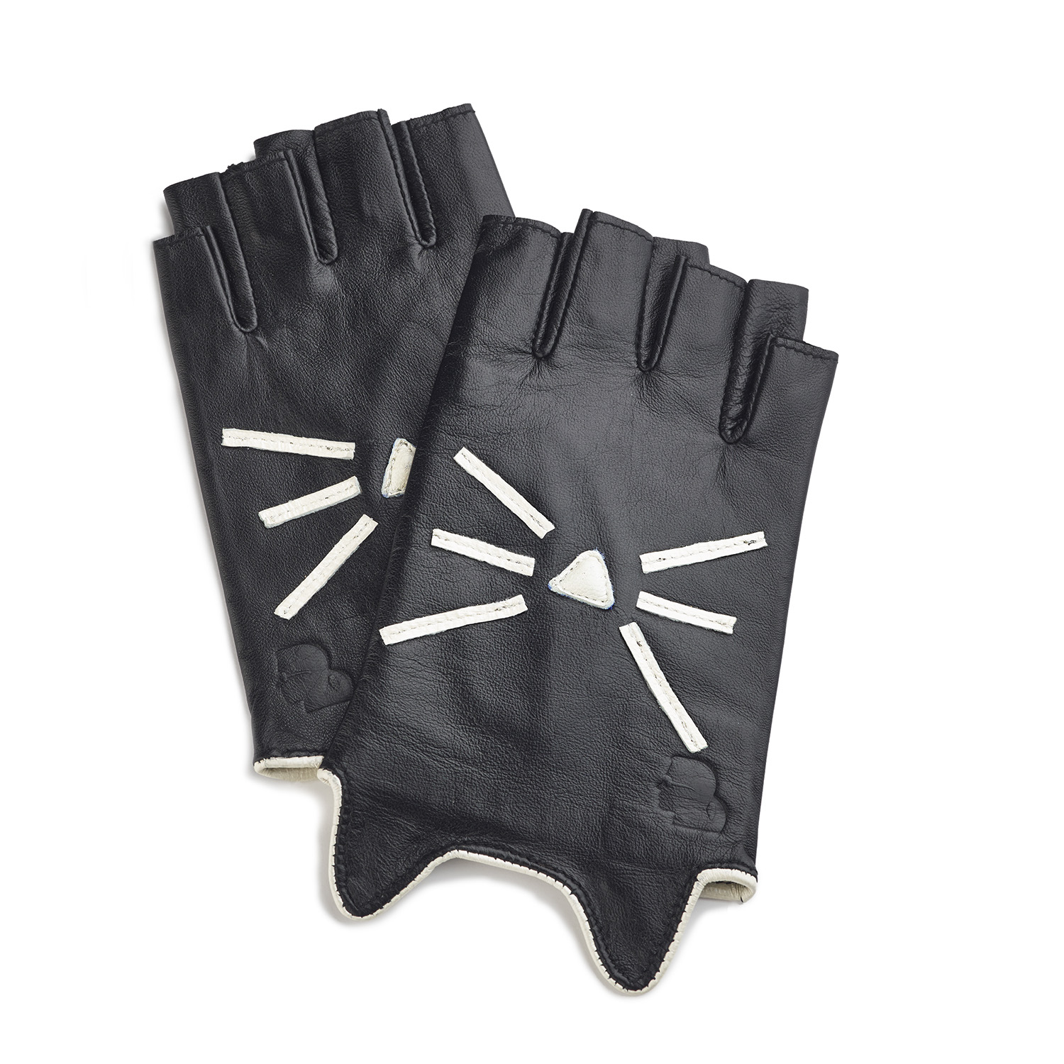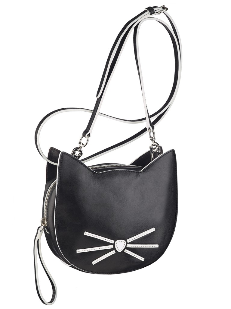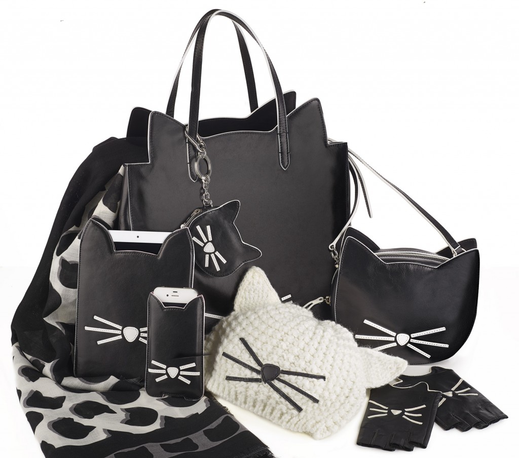 Entièrement en noir et blanc, à l’exception d’une écharpe teintée de rouge, cette ligne d’accessoires et de maroquinerie portant le doux nom de Choupette s’habille du nez et des moustaches de la célèbre chatte.